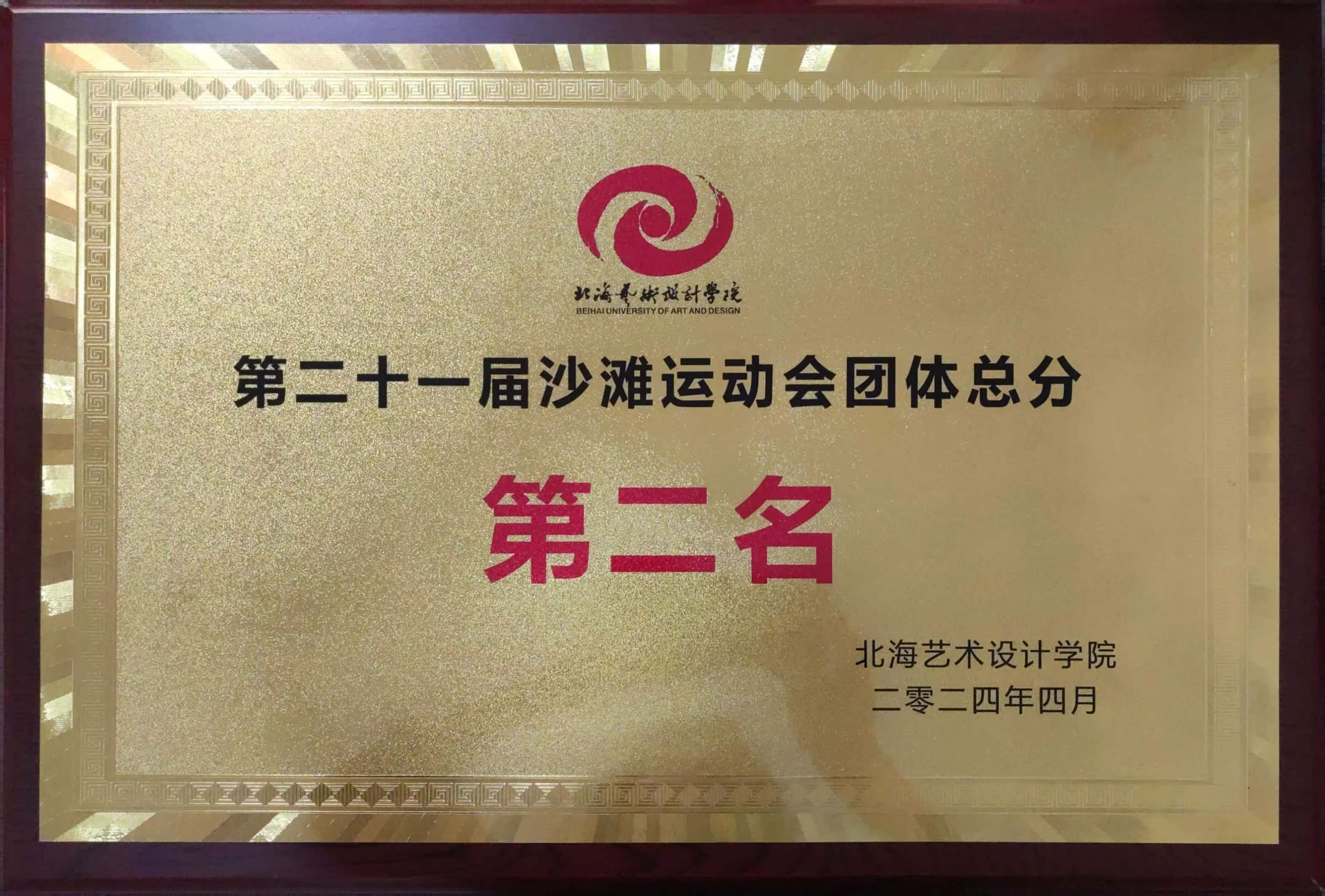 (第二十一届沙滩运动会团体总分第二名奖状)