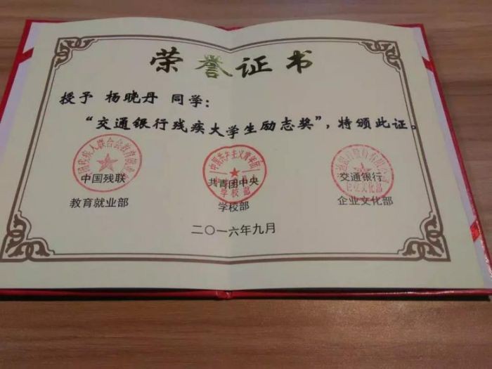 杨晓丹所获证书