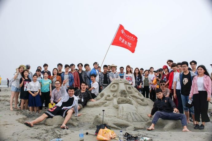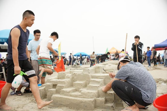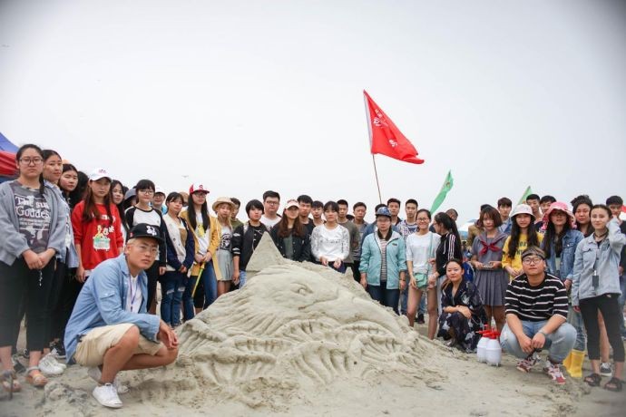沙滩运动会共有6个项目,其中最备受瞩目的当属沙雕了。每个班级制作的非常壮观,引得许多游人闻声而来。