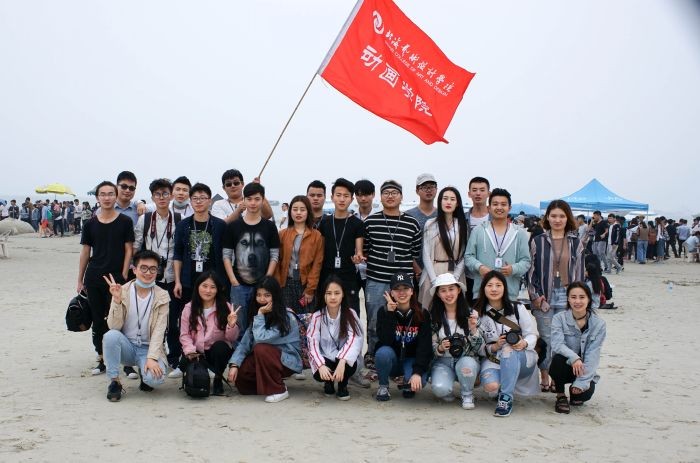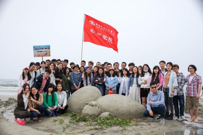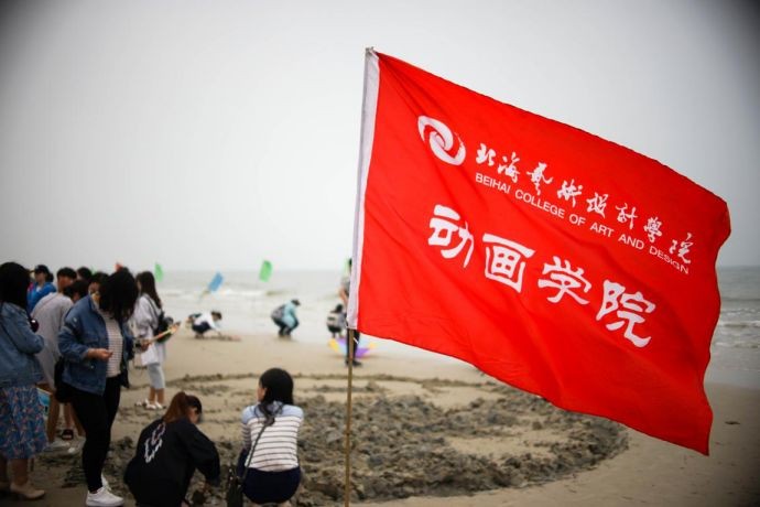 我们抵达银滩迅速找到动画学院所在位置,因为我们安排了旗手提前到达银滩,找到位置发出位置信息,并高举动画学院旗帜让人看到。听完开幕式演讲后,第17届沙滩运动会暨第13届沙雕比赛正式开始!