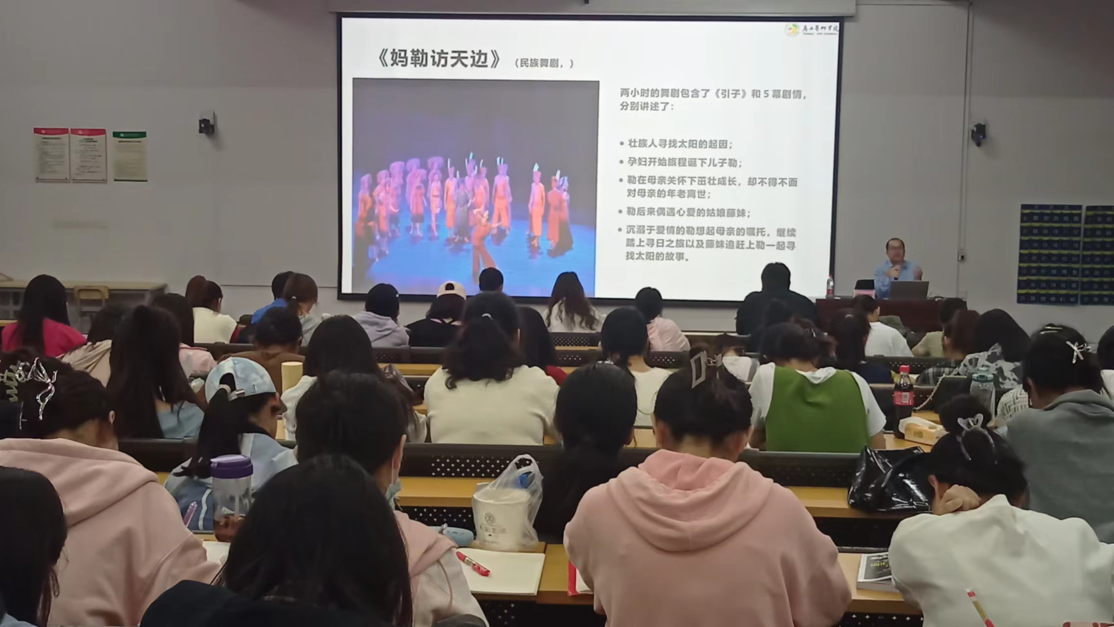 讲座最后在热烈的掌声中落下帷幕。谢教授的精彩讲解不仅让师生们对广西戏剧有了更深入的了解,也激发了大家对传统文化的热爱与尊重。此次讲座无疑为广大师生提供了一次宝贵的戏剧盛宴和文化享受。(谢佩玲/摄)