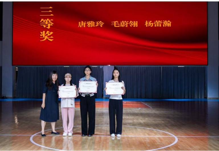 在入围丝巾展示后,进入了颁奖环节。设计学院副院长白建强、李佩颁发优秀奖。外聘教授张树新、赵明、刘青林和徐雯分别颁发一二三等奖和最佳创意奖。