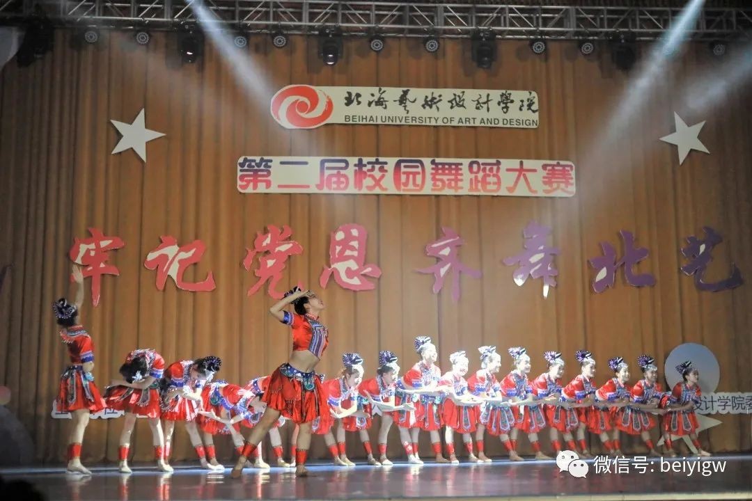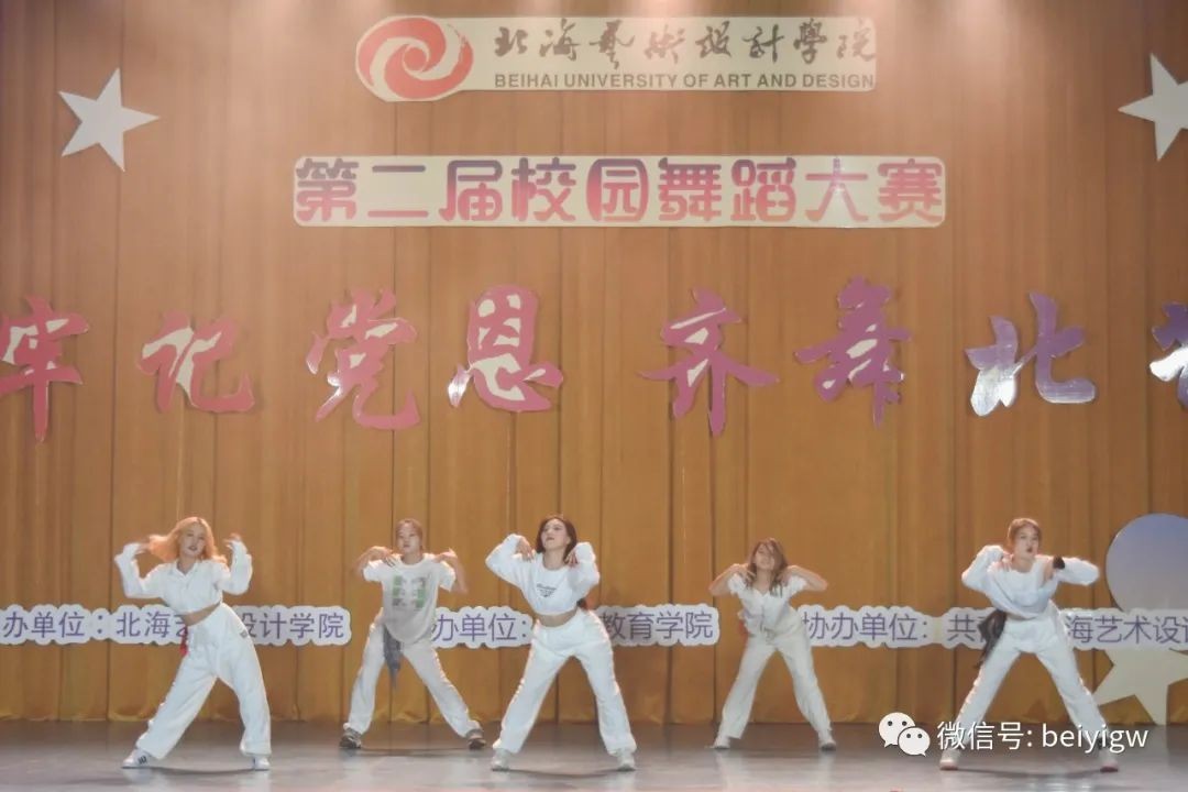 广西舞蹈家协会常务理事、广西舞蹈家协会舞蹈专业委员会主任、北海艺术设计学院舞蹈专业学科带头人、教授覃海,北海艺术设计学院舞蹈专业教授张龙,国家一级编导、广西舞蹈协会副主席钟丽春,我校舞蹈专业副教授杨建中、刘珍,国家二级演员、北海市舞蹈家协会理事、北海市文艺交流中心艺术培训部长霍军燕,国家二级演员、北海市舞蹈家协会会员黄福英担任本次比赛评委嘉宾。 本次舞蹈大赛分有专业组和非专业组共16支队伍闯进决赛。首先上场的是非专业组的6支比赛队伍,比赛现场,同学们用舞姿展示动人风采,展现活力青春。