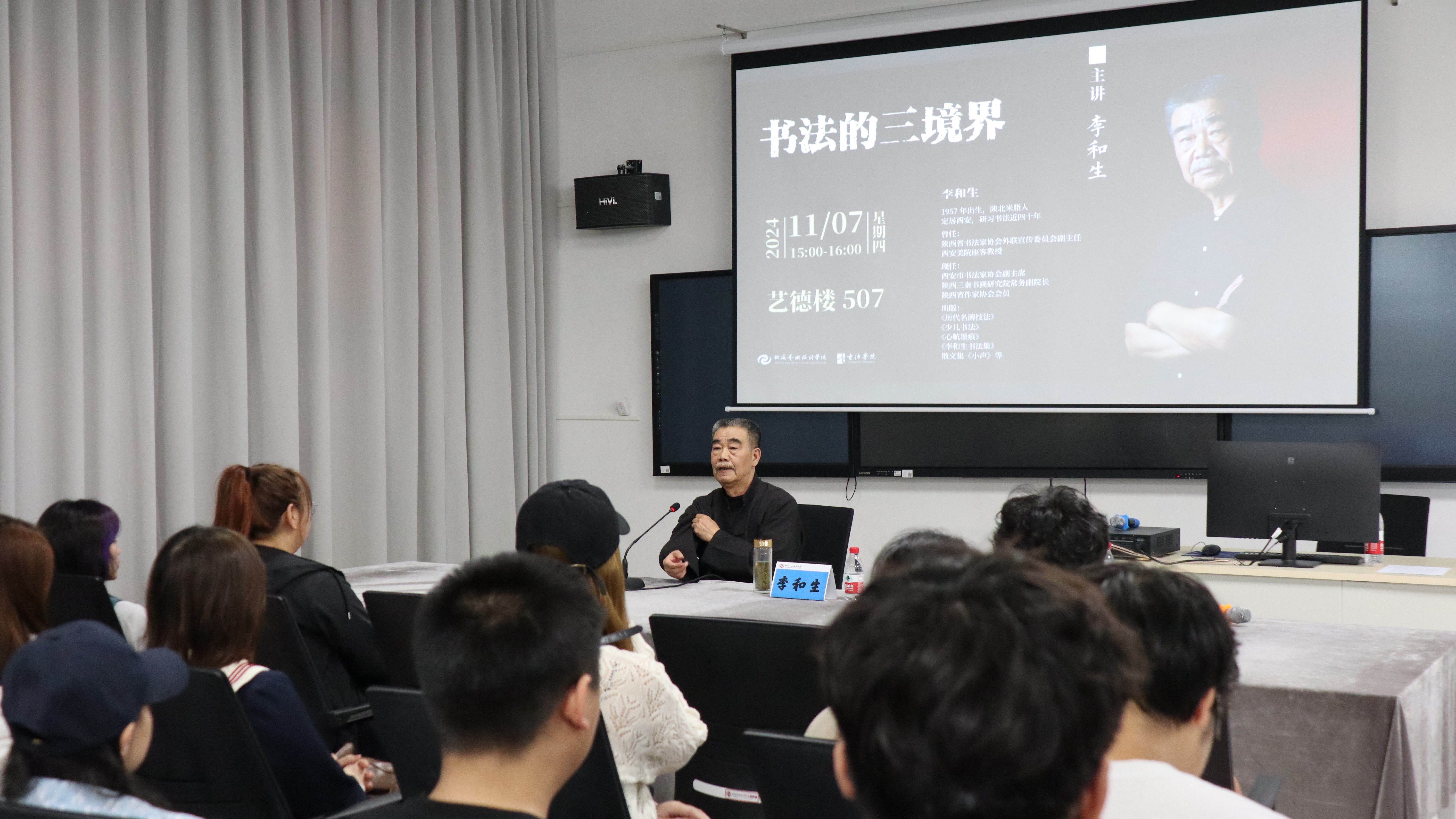 2024年11月7日下午,一场别开生面的书法艺术座谈会及交流笔会在艺德楼507书法学教研室开展。此次活动邀请了西安市书协副主席李和生先生作为主讲嘉宾,陕西历史博物馆党委副书记李树青先生、西安碑林博物馆书法交流中心主任王冰先生、陕西省妇女书画协会副主席唐光华女士、西安中信书画院秘书长吴建华先生,书法学院师生们共同参加了本次交流笔会,为大家带来了一场精彩的书法艺术盛宴。