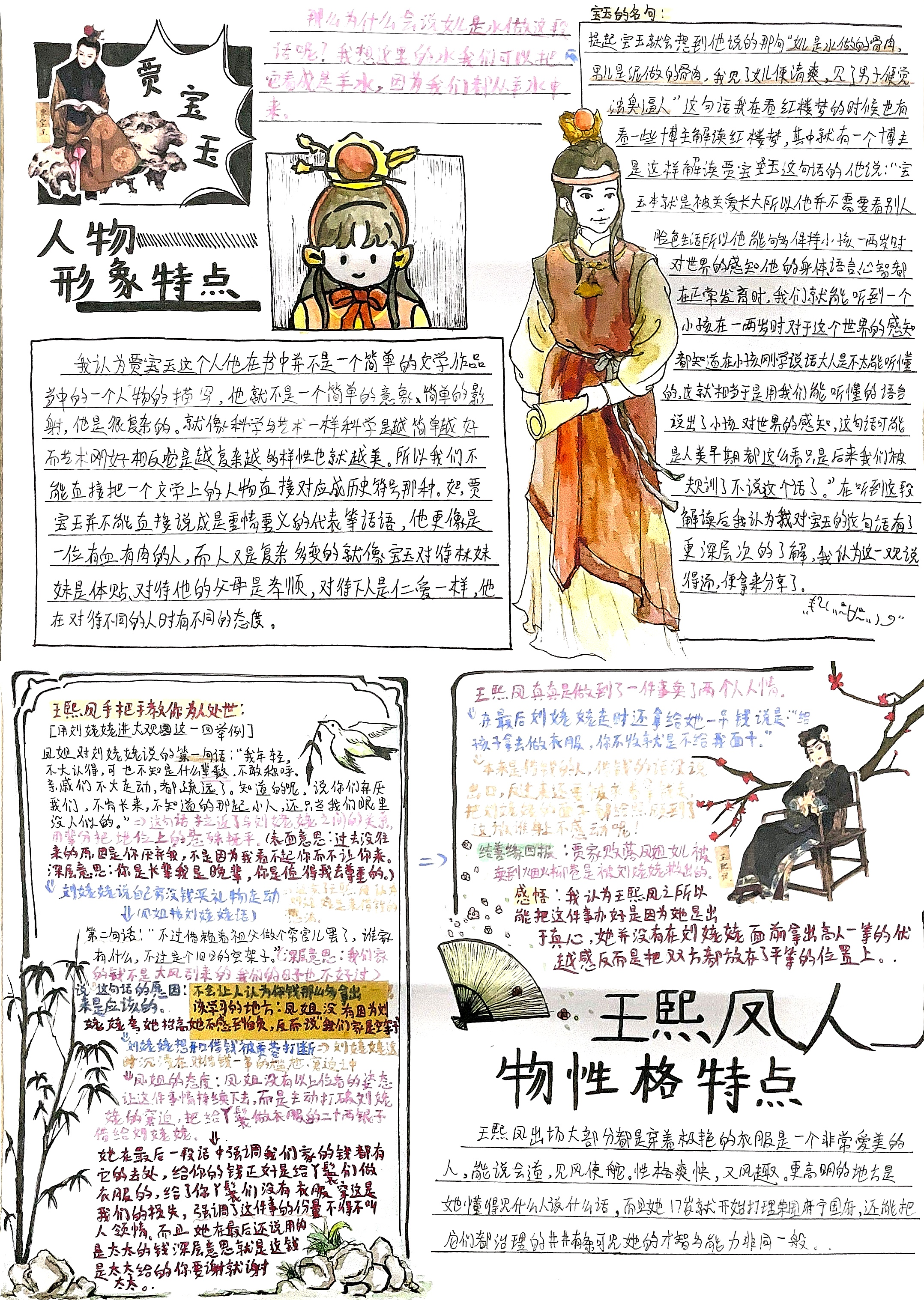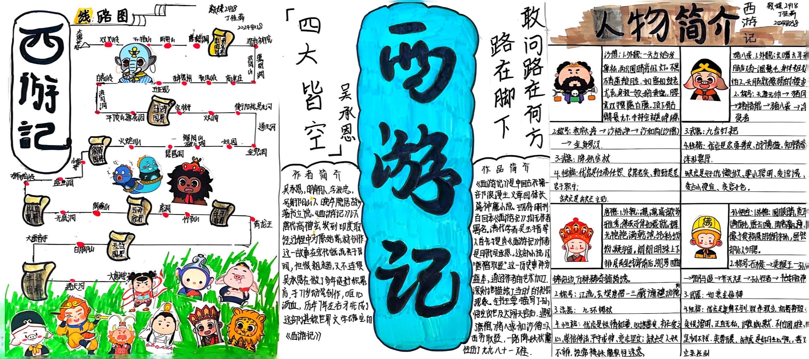 本次大赛已构建起“全员参与、全程用心、全面展示”的特色育人模式,不仅融入文学院课程体系之中,更是传承中华优秀传统文化的重要载体。大赛将艺术思维与创新意识融入经典解读,实现跨学科融合创新。文学院以四大名著读书笔记大赛为抓手,引导学生深入研读经典,传承中华优秀传统文化,形成独立思考的学术品格,培养具有深厚人文底蕴的人才。以下是部分优秀作品展示: