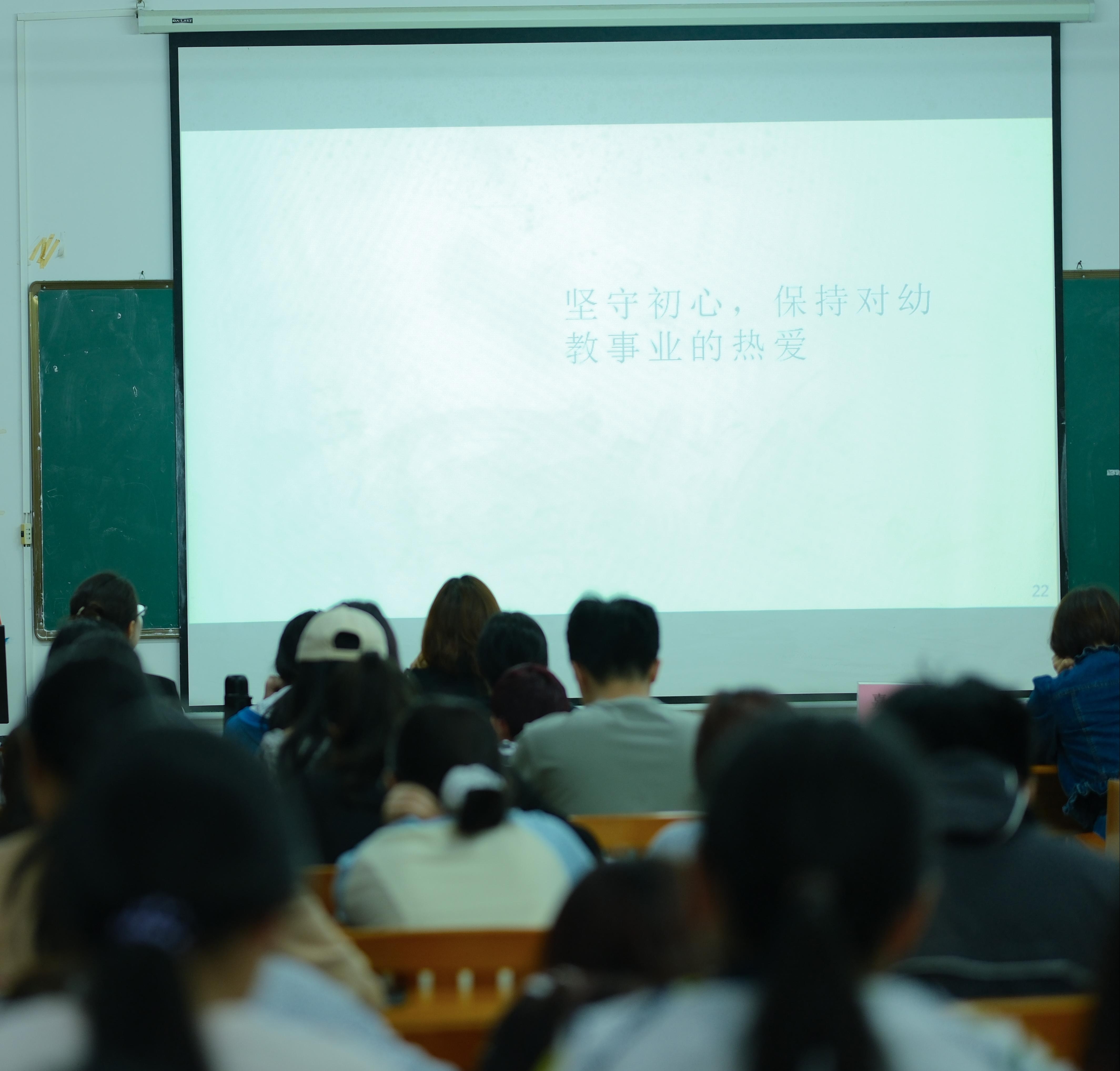 在宣讲会的尾声,教育学院院长熊秀峰进行总结发言。她指出,园长和师姐的精彩宣讲,用为学前教育专业学生提供了就业与职业发展的实践经验,告诉我们所有人都是在某个节点要担负时代使命的人,用爱和坚守在平凡的岗位上一定能够成就自己的理想。希望同学们在未来的职业道路上学习这种精神,将教育情怀转化为个人使命的内在动力,在教育领域成为有担当的人。熊秀峰进一步阐释,使命、博爱、坚守、责任,正是教育学院始终倡导的价值理念,希望通过本次宣讲活动,同学们能够更理性地看待自身专业,正视新时代就业环境中的机遇与挑战,树立正确的就业观,科学规划职业生涯。