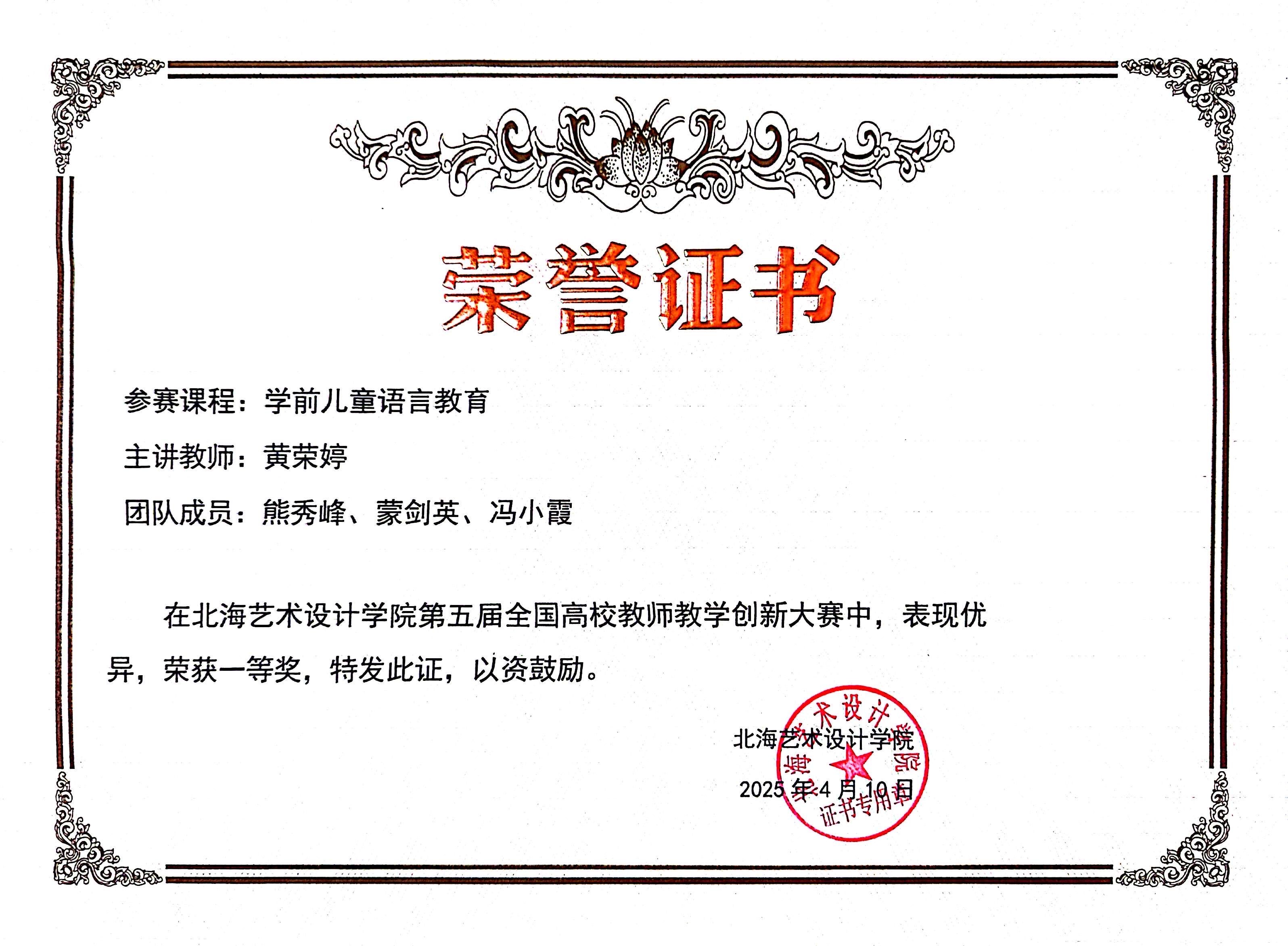 在学院“问题导向、创新驱动”的课程改革方针指导下,学前教育专业教师团队深耕课堂教学,聚焦真实问题提出解决方案,形成了一批具有辐射推广价值的创新成果。黄荣婷老师主讲的《学前儿童语言教育》课程,凭借“理论-实践-师德”三位一体的创新设计,连续斩获第三届、第五届校级教学创新大赛一等奖;冯小霞老师以“四新”理念重构《幼儿科学教育与活动指导》课程,获第四届校级教学创新大赛三等奖;覃思老师主讲的《幼儿园课程》则通过“课程思政+专创融合”模式获第五届校级教学创新大赛优秀奖。连续三届的优异成绩,不仅彰显了教师们扎实的教学功底与创新能力,更印证了学院“以赛促教、以赛促改”机制的显著成效。