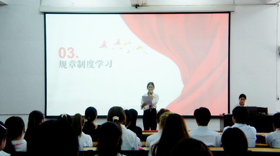 在部门介绍环节,各部门干部依次登台介绍部门职能,分团委组织部学生会组织部、纪检部、新媒体宣传部办公室,分别围绕各部门核心职责进行讲解。各部长的讲解条理清晰,让在场成员跳出模糊认知,精准把握各部门的职责边界与协作方向,更帮助大家明确自身未来参与工作的切入点,为后续精准参与工作、发挥个人特长明确了方向。