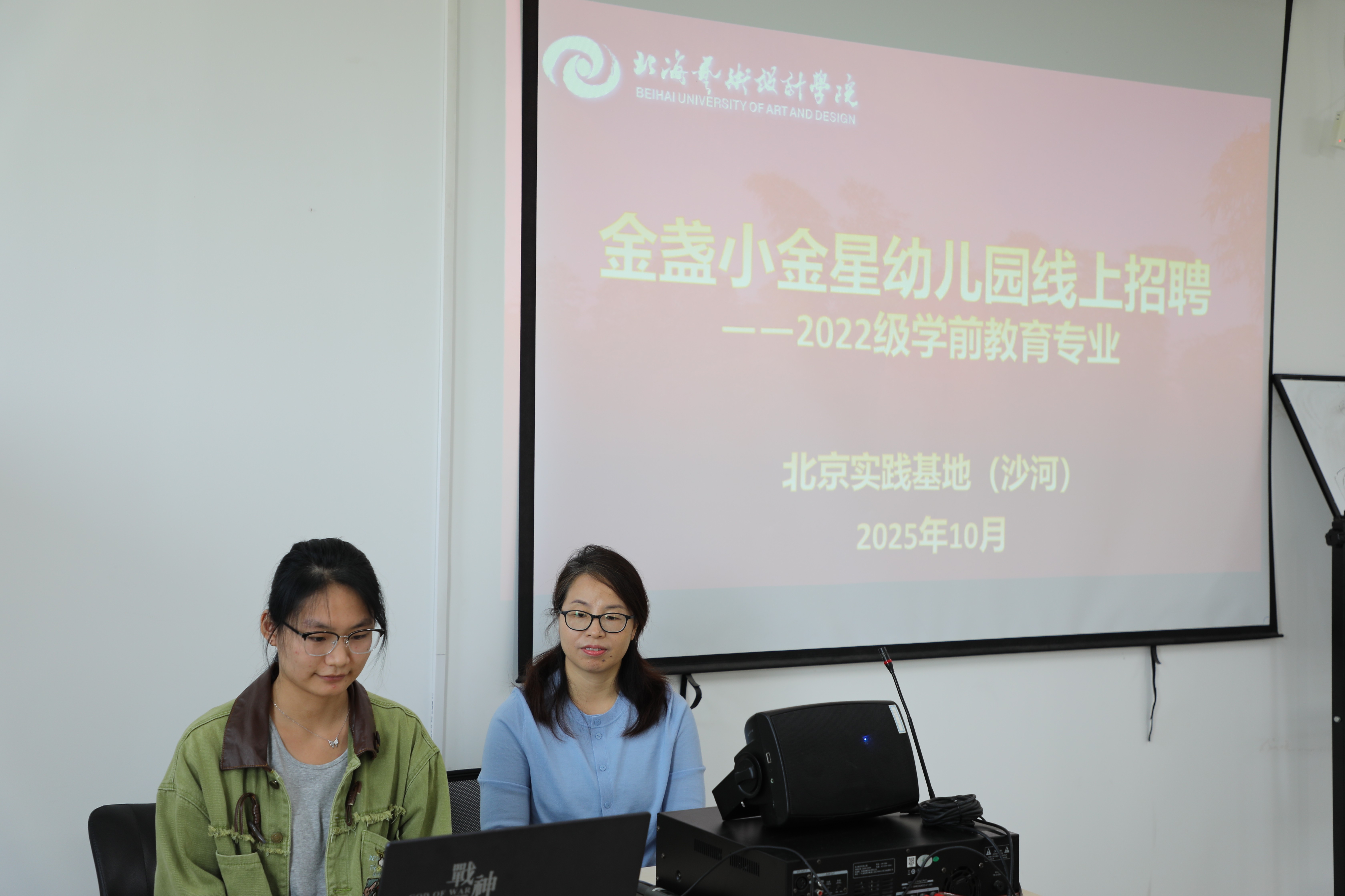 在岗位对接环节,熊秀峰院长与北京实践基地沙河副主任严腾深度协作,特别联动北京市朝阳区京旺小金星幼儿园负责人,针对学前教育专业学生的职业发展方向,精准匹配实习就业岗位。考虑到学生地域分布特点,双方创新采用“线上面试”模式,熊院长与严腾副主任共同坐镇指导,从礼仪规范、专业问答、教学场景应对等方面为学生提供实时建议,帮助学生展现最佳状态。