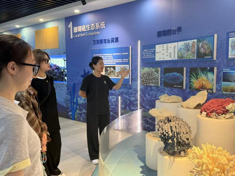 在涠洲岛的滴水丹屏海滩,指导老师组织学生们聚焦旅游活动对海岸环境的影响展开深入探讨,将这一抽象议题以直观的方式呈现在学子们眼前。行前,学生们认真预习了环境伦理学的经典文献,为实践做好了充分的知识储备。在涠洲岛珊瑚馆和海滩现场,他们积极尝试运用人类中心主义、生命中心主义等理论,细致分析眼前所见的生态现象与人类活动之间的冲突。原本在书本上晦涩难懂的理论,在真实的生态场景中变得鲜活起来,让学生们能够更加直观地感受到生态问题的复杂性和紧迫性。此次实践的核心重点在于搭建起抽象的生态哲学理论与涠洲岛具体可感的生态系统之间的桥梁。指导老师引导学生们超越“应否保护环境”这一表层的讨论范畴,深入思辨“为何要保护”“在保护中谁的价值应优先考量”等深层次的伦理难题。