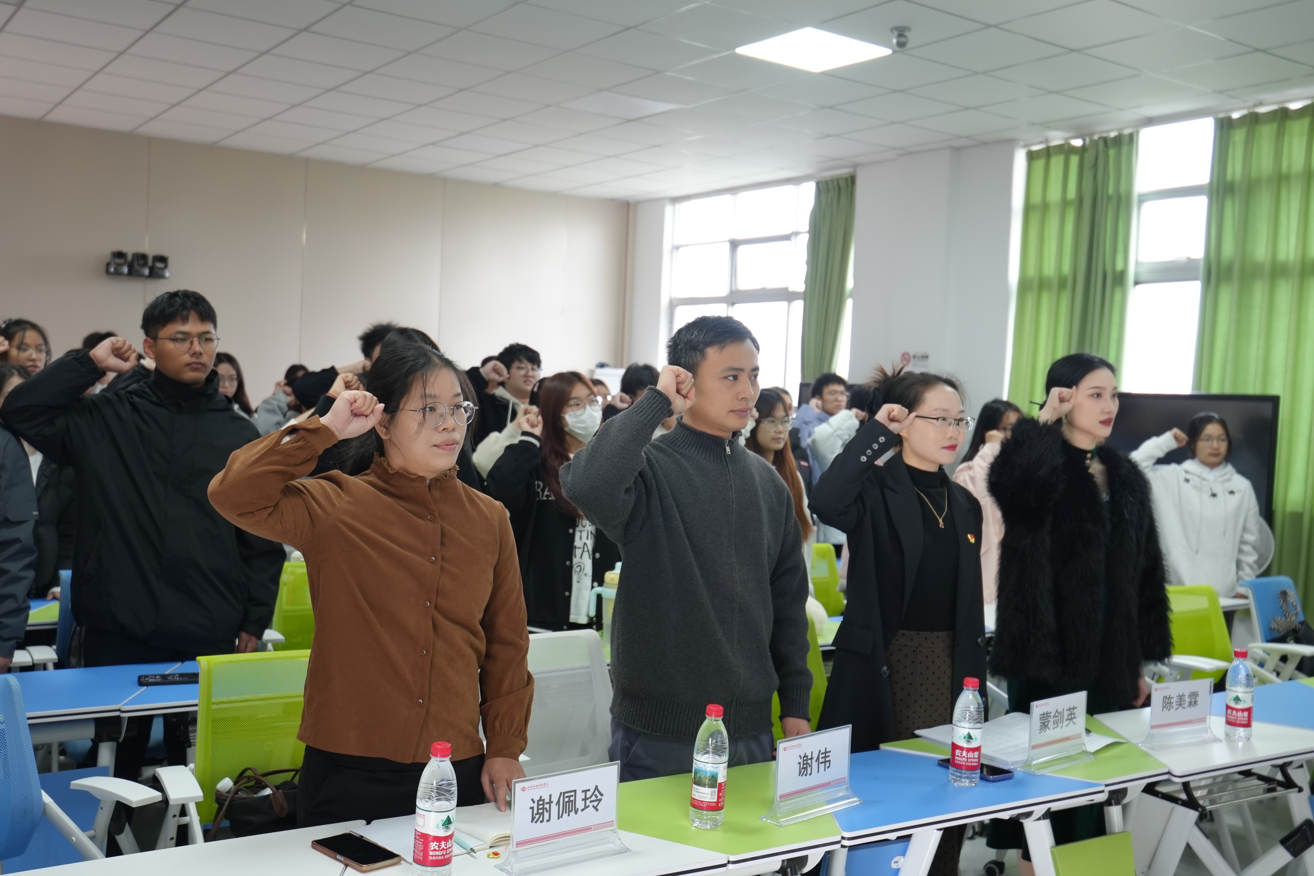 为深入学习贯彻习近平新时代中国特色社会主义思想,落实立德树人的根本任务,着力培养信仰坚定、能力突出、勇于担当的青年马克思主义者,12月14日,哲学学院与教育学院在东校区觉悟楼401教室联合举办2025-2026学年“第二期青年马克思主义者培养工程”活动。哲学学院党支部书记谢伟、教育学院副院长蒙剑英、教育学院团总支书记陈美霖、哲学学院谢佩玲老师出席仪式,哲学学院与教育学院团员及学生干部参加。本次开班仪式由哲学学院吴玥同学和教育学院丁朝旭同学共同主持。