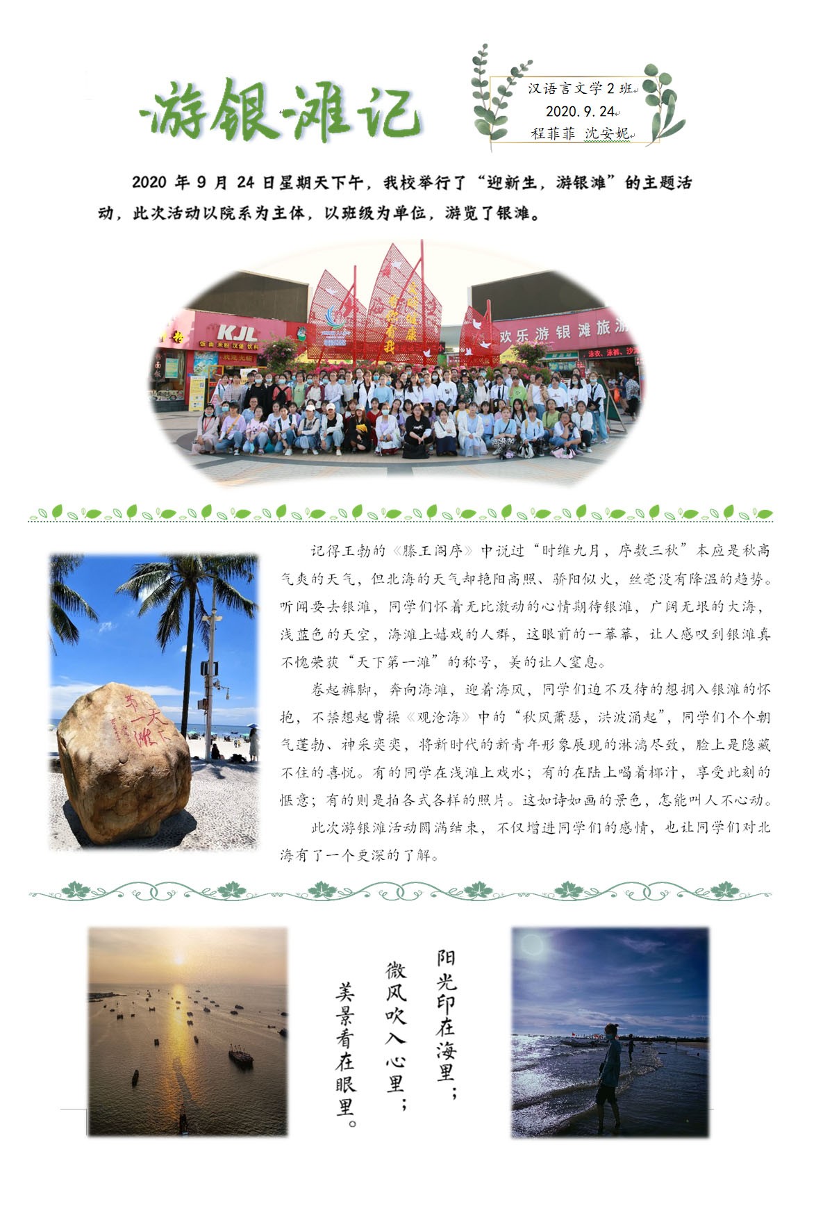 游银滩记(2020级汉语言文学2班)