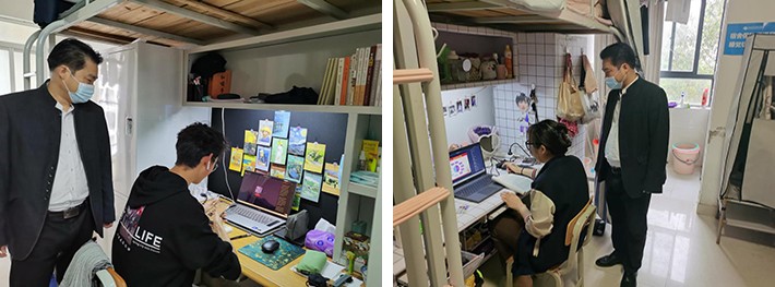 为了了解我院学生网课学习情况,加强师生交流,3月8日上午,我院副院长李水亮、学工办主任谢伟、教务处人员以及各班班主任走访我院学生宿舍,关心学生学习生活状况。