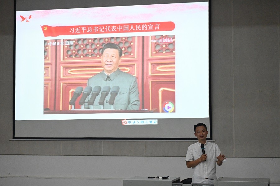 为深入学习贯彻习近平总书记“七一”重要讲话精神,进一步兴起学习宣传贯彻的热潮,全面提升广大师生的思想政治素养和党员干部的党性修养,推动党史学习教育走深走实,为创建西部一流艺术设计学院和民办高校党建工作典范贡献力量。根据学院党委的统一安排,10月4日晚上,学校学习贯彻习近平总书记“七一”重要讲话精神讲师团成员、第四党总支书记刘承初在公德楼107教室作学习习近平总书记在庆祝中国共产党成立100周年大会上的重要讲话精神专题宣讲会,对习近平总书记“七一”重要讲话进行了深入解读。会议由人文教育学院院长熊秀峰同志主持,人文教育学院教职工、学生代表共计199人参加会议。