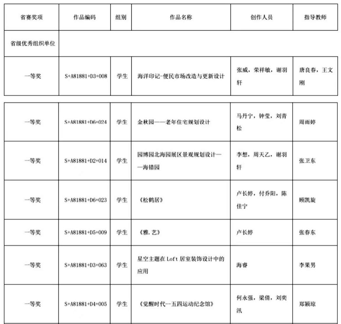 (一等奖获奖名单)