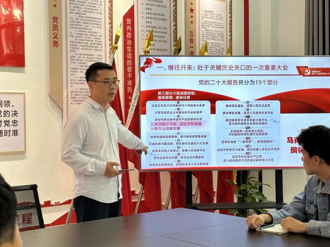 3月8日,陶立阳同志在功德楼115主持召开了“党的二十大精神”宣讲会,通识教育学院和动画与传媒学院师生代表参会。陶立阳同志结合党的二十大精神相关内容希望党员教师、积极分子认真学习领会党的二十大精神,以标准严格要求自己,在学习领悟中坚定理想信念,不忘初心、牢记使命,理论密切联系生活实际,积极发挥带头作用,要深刻领会大会主题的重大意义、思想要义、实践要求,深刻领悟大会报告和大会系列讲话、相关文件精神,明确方向、坚定信心,踔厉奋发、勇毅前行。