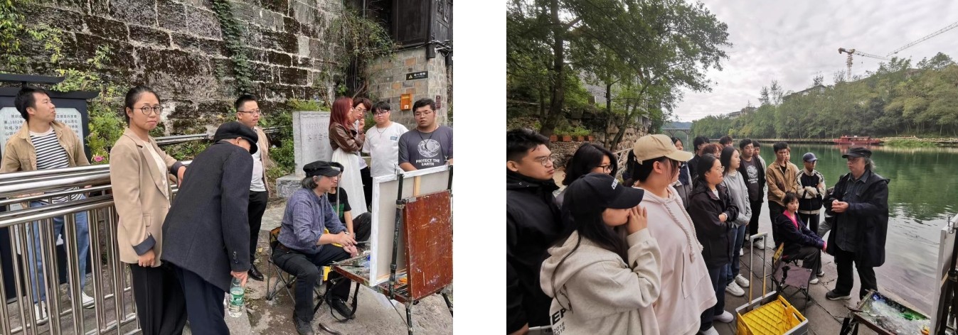 专业写生是三年级学生进入专业领域后学习感受最为直接的一门课,学生在对本专业材料、媒介的理解使用基本熟悉的基础上,为方便学生更直观地掌握自己所在专业艺术创作的基本特性,曲湘建教授以及专业教师分别为同学们进行了示范与讲解。