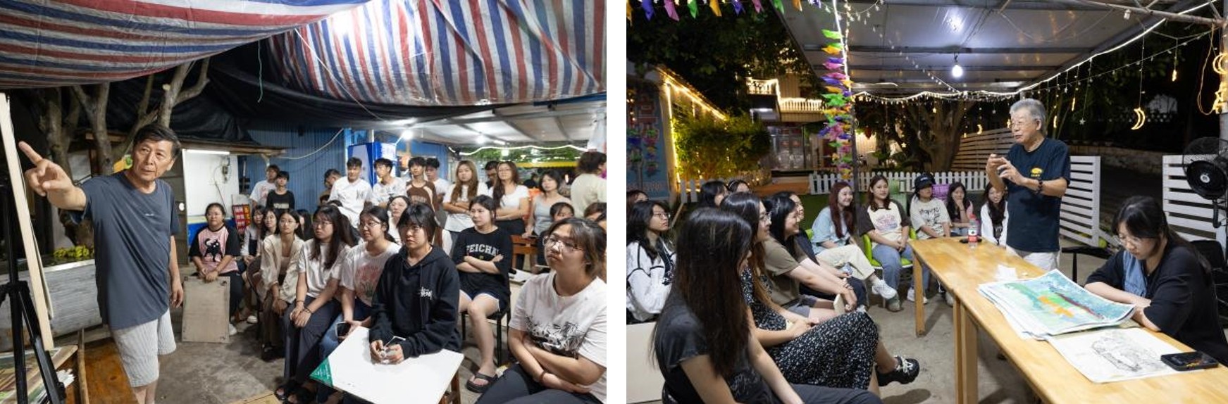 每天,教授和老师们通过现场讲授、作范画及逐个辅导等方式从取景、构图、光线、色调等方面悉心为同学们进行指导。晚上有序组织各班级开展集中讲评活动,指出画面中的优点和不足,分析存在问题,总结得失。