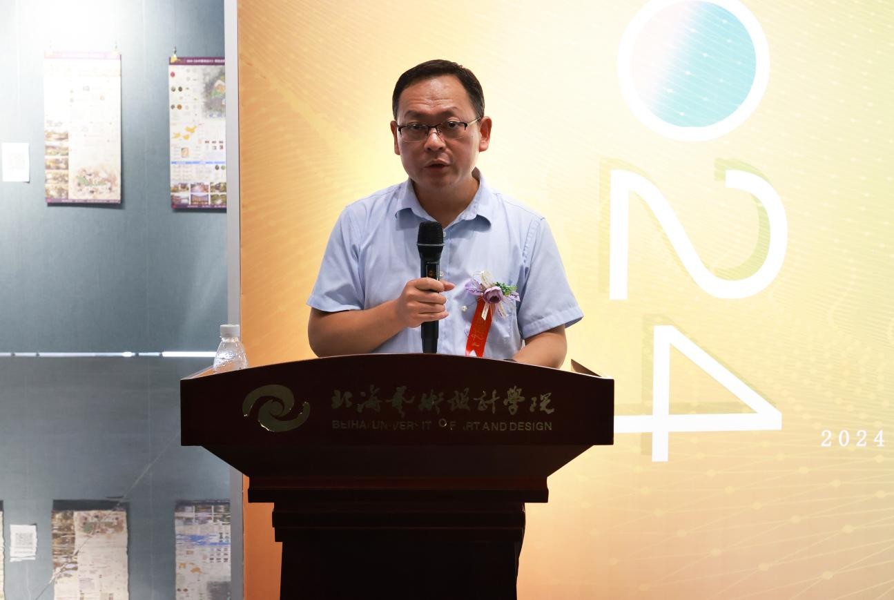 (北海艺术设计学院校长助理、建筑与环境艺术学院院长王照伟宣布展览开幕)