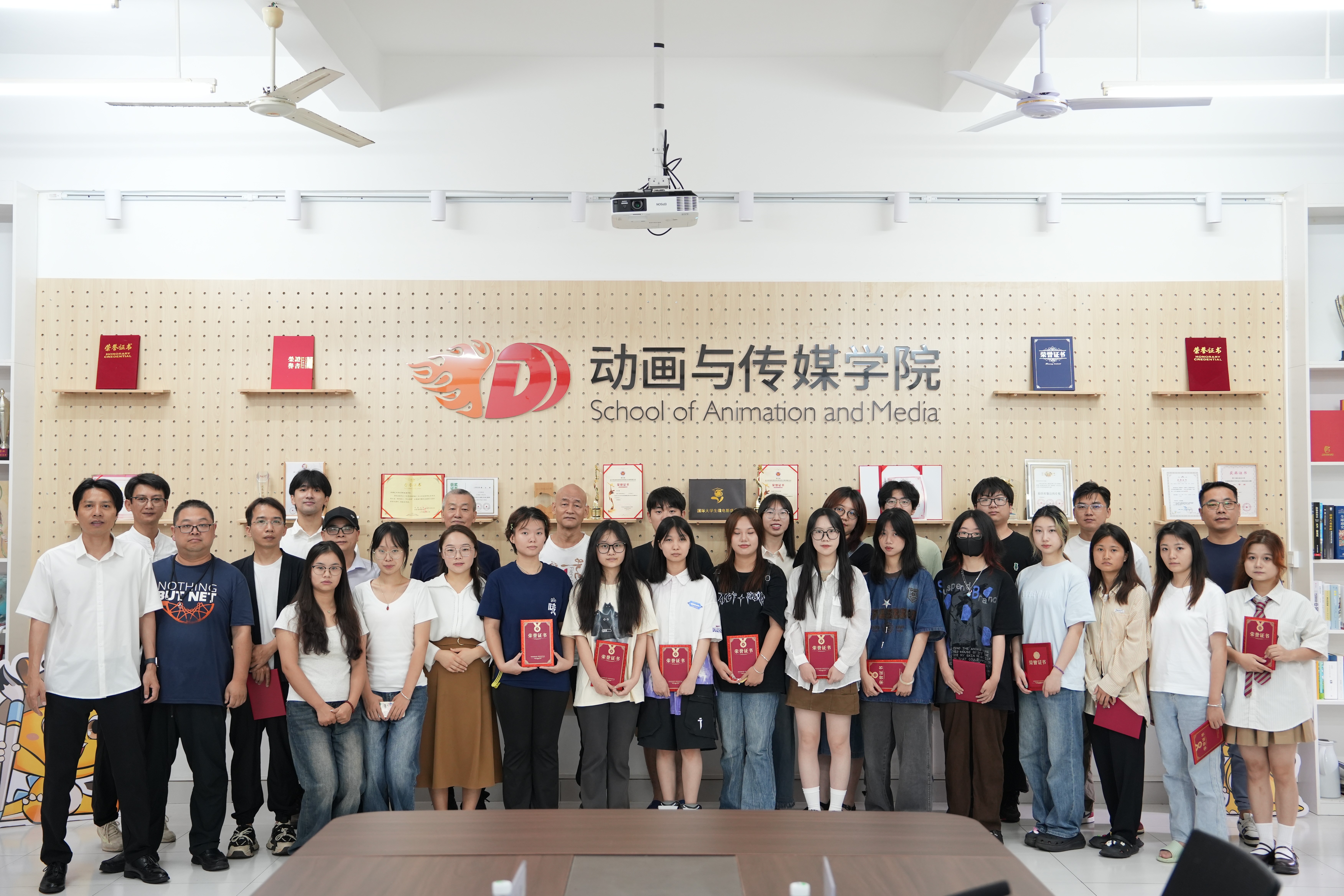 为加强学院文化建设,丰富和拓展学院文化内涵。经过近3个月的精心筹备和激烈角逐,6月6日上午,动画与传媒学院第六届“鲸鱼杯”角色创意设计大赛迎来了颁奖仪式。动画与传媒学院张帆书记、动画专业带头人王钢教授、资深教授廖大勇,学院副院长杜博、刘涛、李宗毅以及30名师生参加了此次颁奖仪式。