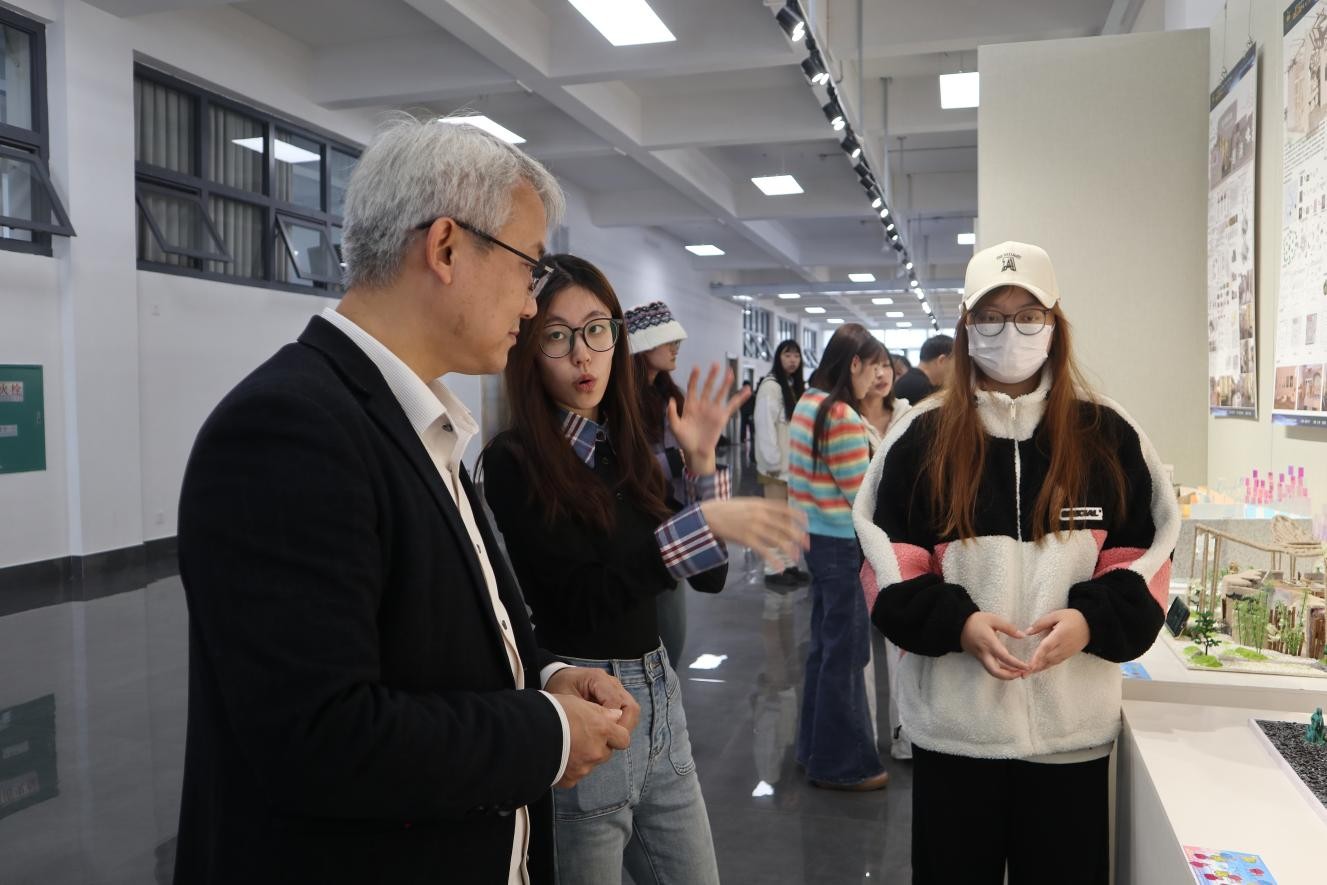 学生代表叶巧靖同学满怀激情地分享了《展示空间设计模型制作》课程中的学习经历,强调了同学们的作品均凝聚了对中国传统文化的深刻理解与艺术创新的探索,期待通过展览,让更多人感受到展示空间设计的魅力,并希望获得大家的宝贵意见以促进同学们的成长。