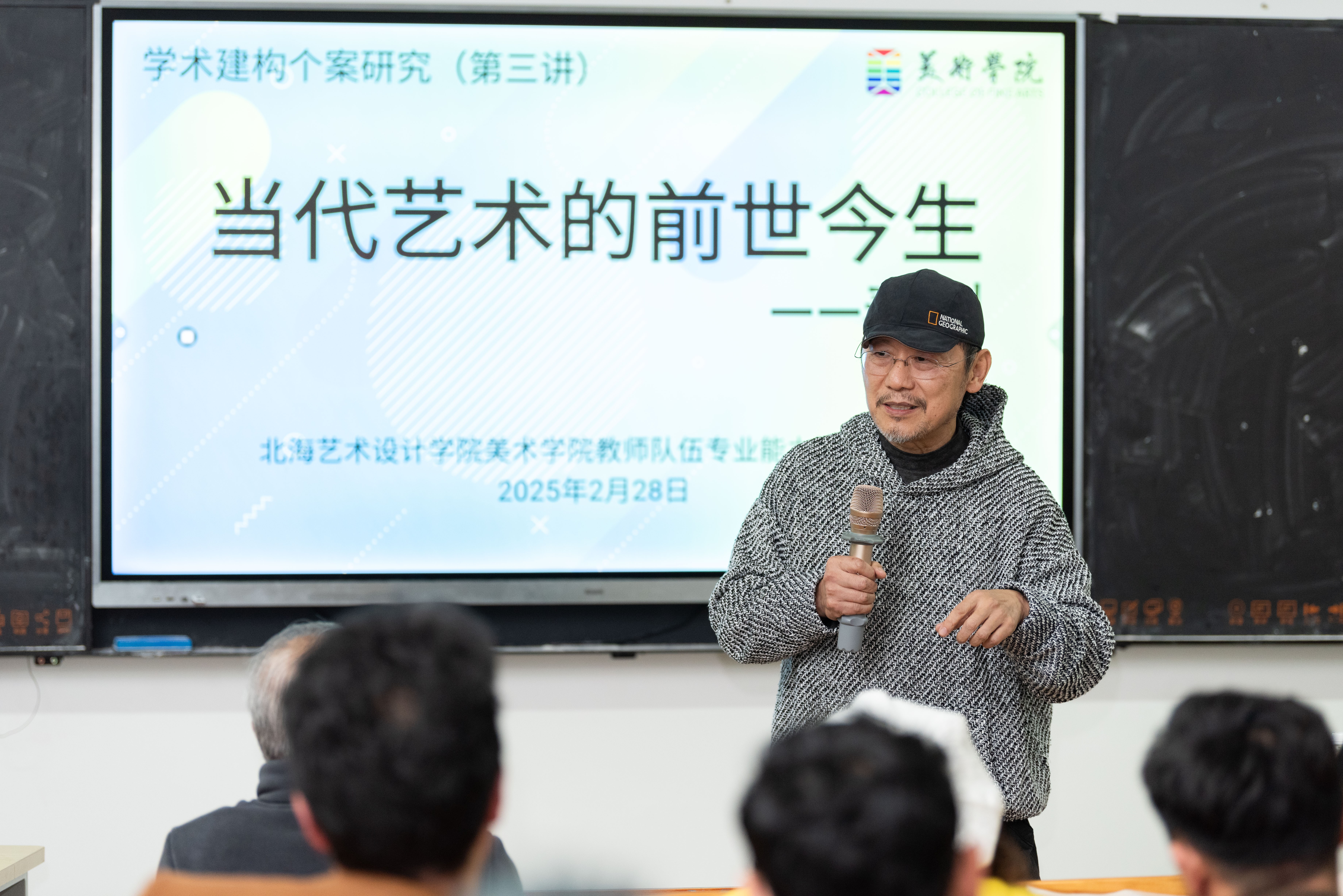 228日,美术学院在艺术楼314教室成功举办了教师队伍专业能力提升计划系列活动的第三讲。本次讲座以当代艺术的前世今生为主题,由美术学院外聘教授,原广西师范大学美术学院油画教研室主任、著名当代艺术家秦剑教授主讲。学院办公室副主任景思晔主持本次讲座,出席人员包括美术学院院长刘斌教授、执行院长龚为教授、副院长金凯婧、副院长陈建江、雕塑专业学科带头人王少军教授以及雕塑、绘画、美术学专业的专任教师。