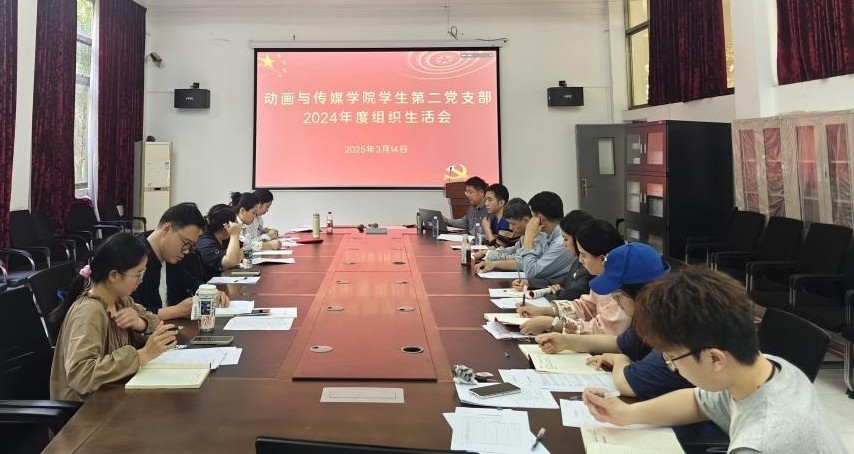 为深入学习贯彻习近平新时代中国特色社会主义思想,巩固深化党纪学习教育成果,综合发挥党的纪律教育约束、保障激励作用,为进一步全面深化改革、推进中国式现代化提供坚强纪律保证。2025 年 3月14日,动画与传媒学院学生第二党支部在综合楼102召开2024年度组织生活会。党支部全体党员参加会议,校级指导组设计艺术学院党总支书记黄锦同志、组织员林志锋同志莅临指导会议。