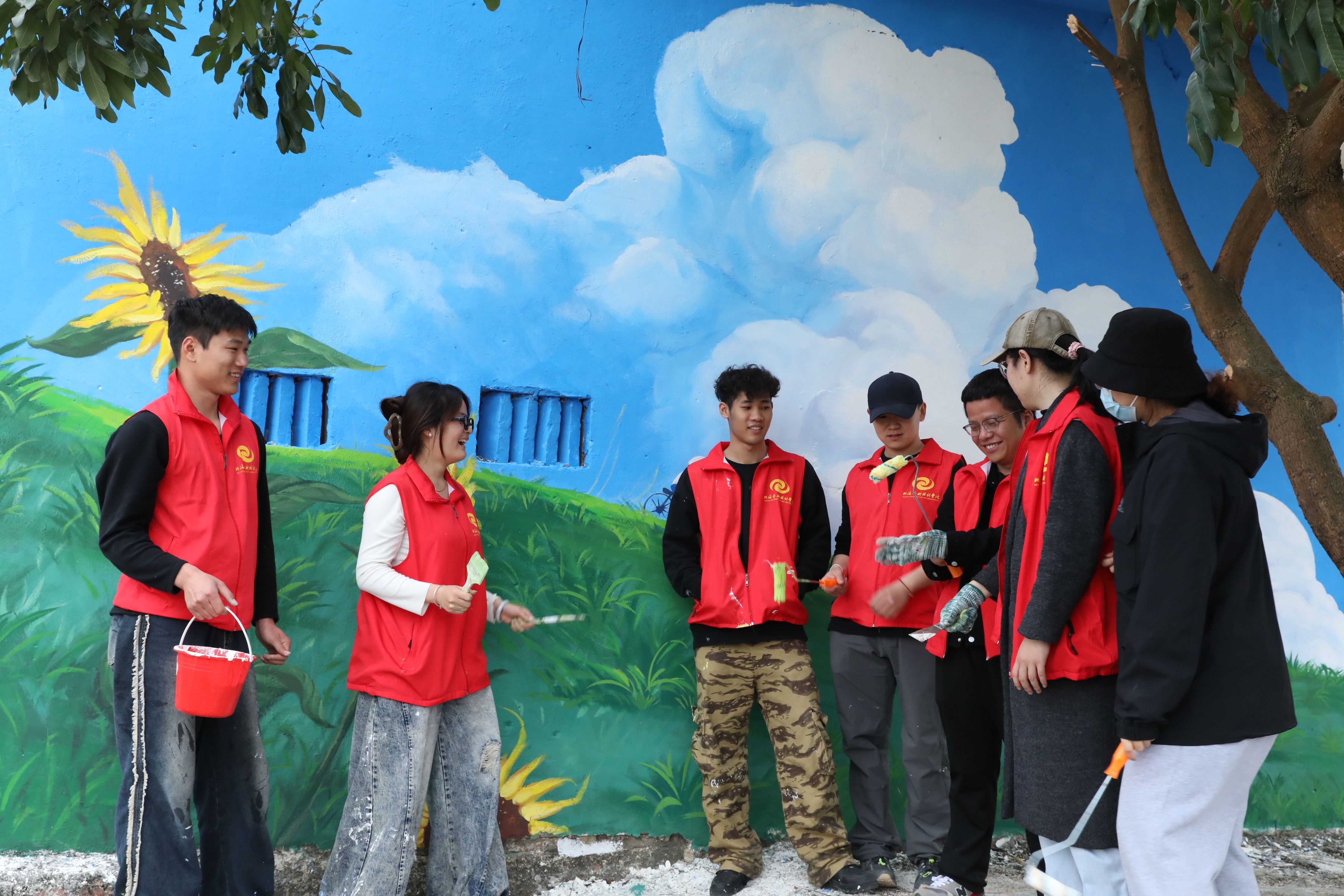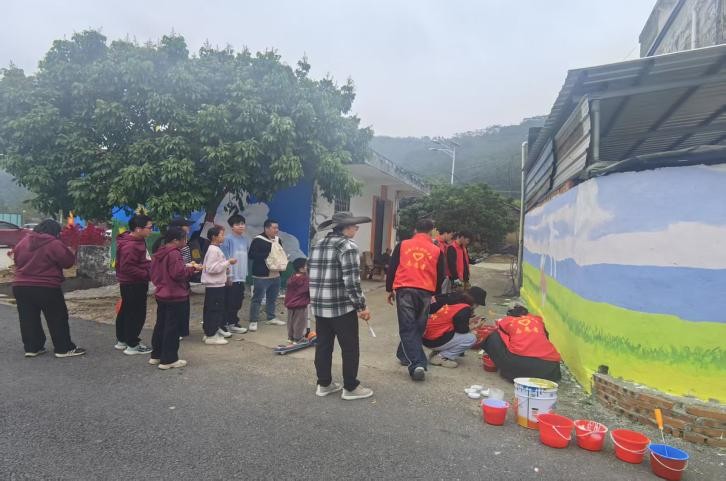 在创作中期,师生团队与村民紧密合作,共同参与到墙绘项目的每一个细节中。不仅促进了艺术与乡村文化的深度融合,还激发了村民对本土文化的认同感和自豪感。村民们纷纷表示,看到自己村庄的墙面变得如此美丽且富有文化内涵,他们感到非常骄傲和高兴。