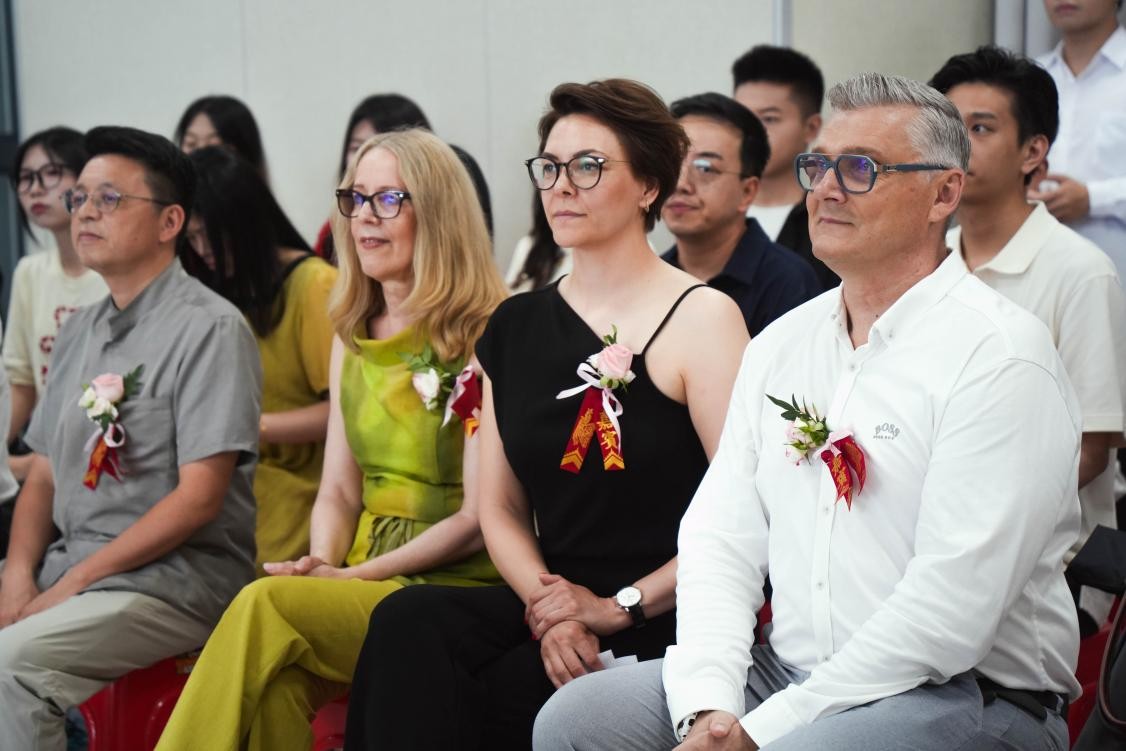北海艺术设计学院纪委书记王照伟、副校长邱杰、副校长何煜出席开幕式,建筑与环境艺术学院院长张春东、建筑与环境艺术学院党总支书记庞定坤、建筑与环境艺术学院副院长蔡世伟、建筑与环境艺术学院副院长张乐平、建筑与环境艺术学院党总支副书记曲玥、佩奇大学工业系主任诺伯特、佩奇大学工程与信息技术学院建筑视觉系副教授艾瑞卡、佩奇大学博士茱莉亚、佩奇大学博士肖洒、通识教育学院(体育部)外语教研室主任曾达英、参与短期课程的教师代表及全体学生参加开幕式。开幕式由建筑与环境艺术学院副院长张乐平主持。