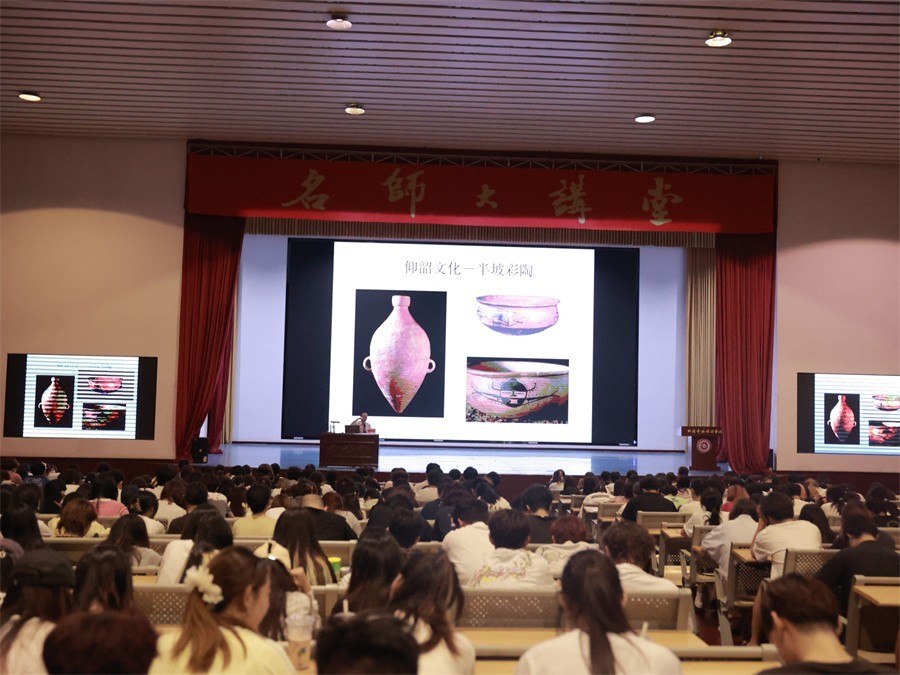 讲座伊始,董建平教授以“文字是传统文化的核心载体”为核心论点切入,从史前文明时期的文化遗存展开论述。他指出,河姆渡文化遗址中出土的陶器刻画符号、仰韶文化的彩陶纹饰,虽属原始表意符号范畴,却真实记录了先民对自然现象的观察、生产生活的实践,是中华文明早期文字形态的重要源头,为商周时期成熟文字体系的形成奠定了基础。