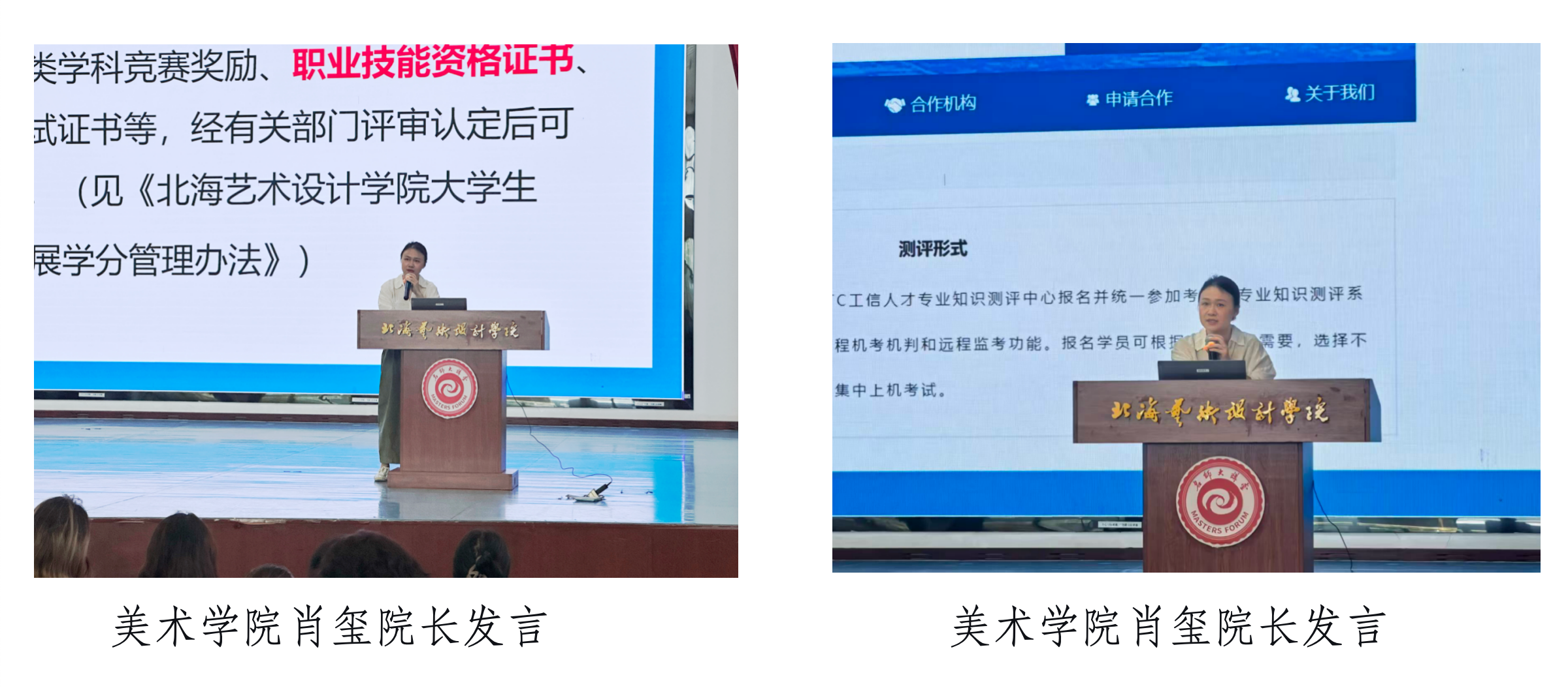 宣讲会首先由肖玺院长结合当下时代人工智能对就业环境带来的影响,深入分析了当前就业形势并强调了IITC证书的实用价值。该证书由工业和信息化部人才交流中心权威认证,自2024年10月起由旧版更名为新版,旧版证书继续有效。证书涵盖数字艺术等七大科目类别,与美术学、绘画、摄影、雕塑等专业高度契合。考试形式为机考机评,证书信息可在官网查询,是提升就业竞争力的重要加分项。