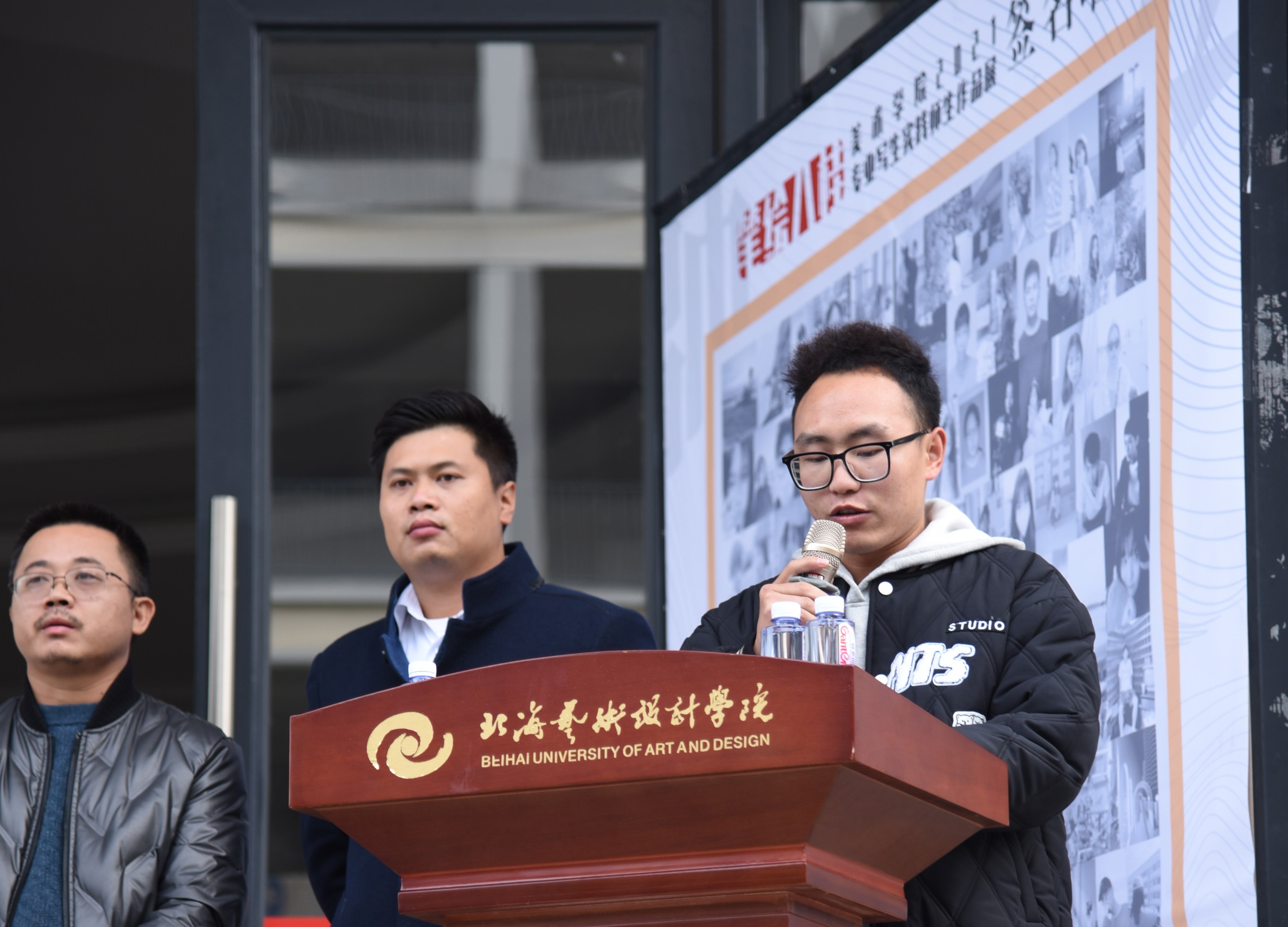优秀学生代表徐进表示自己在写生实践中收获颇丰,这一次展览是老师指导同学,共同努力、共同学习、共同进步的成果展现。