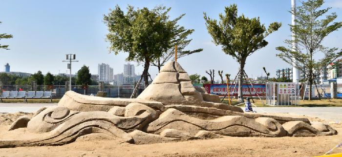 美术学院雕塑专业师生为北海国际客运港创作主题沙雕作品