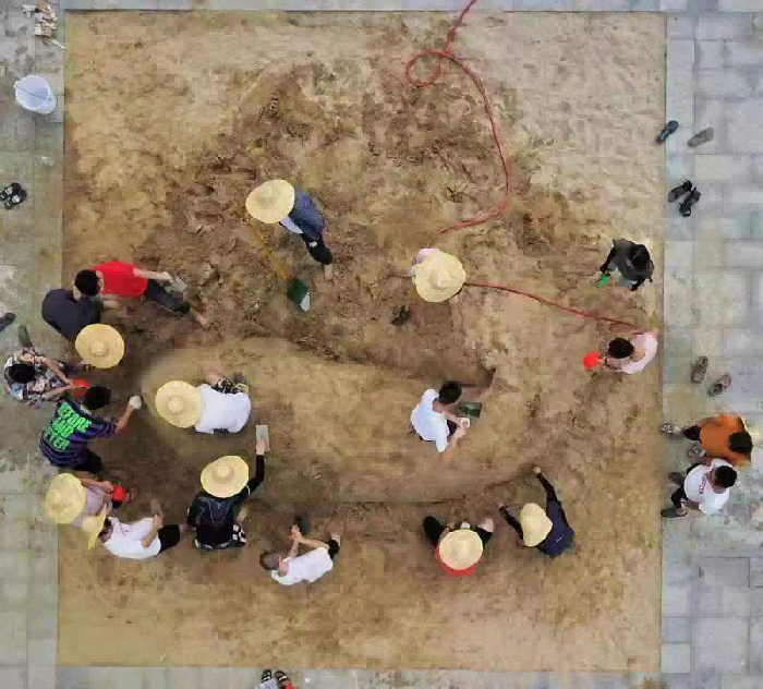 撒水夯实地基,准备创作    孔令石(摄)