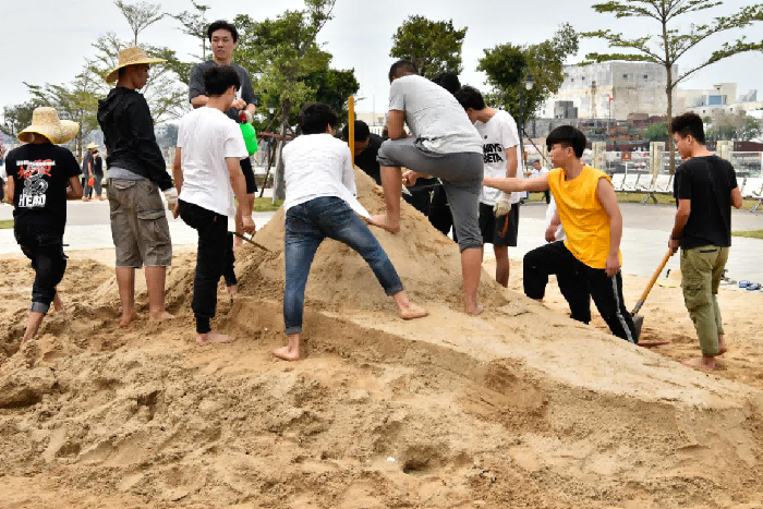 经过全体师生的共同努力下和港口工作人员的配合中,圆满完成了沙雕艺术作品的创作,并得到了港口的认可,为之后的活动奠定了基础。 (金凯靖 摄)
