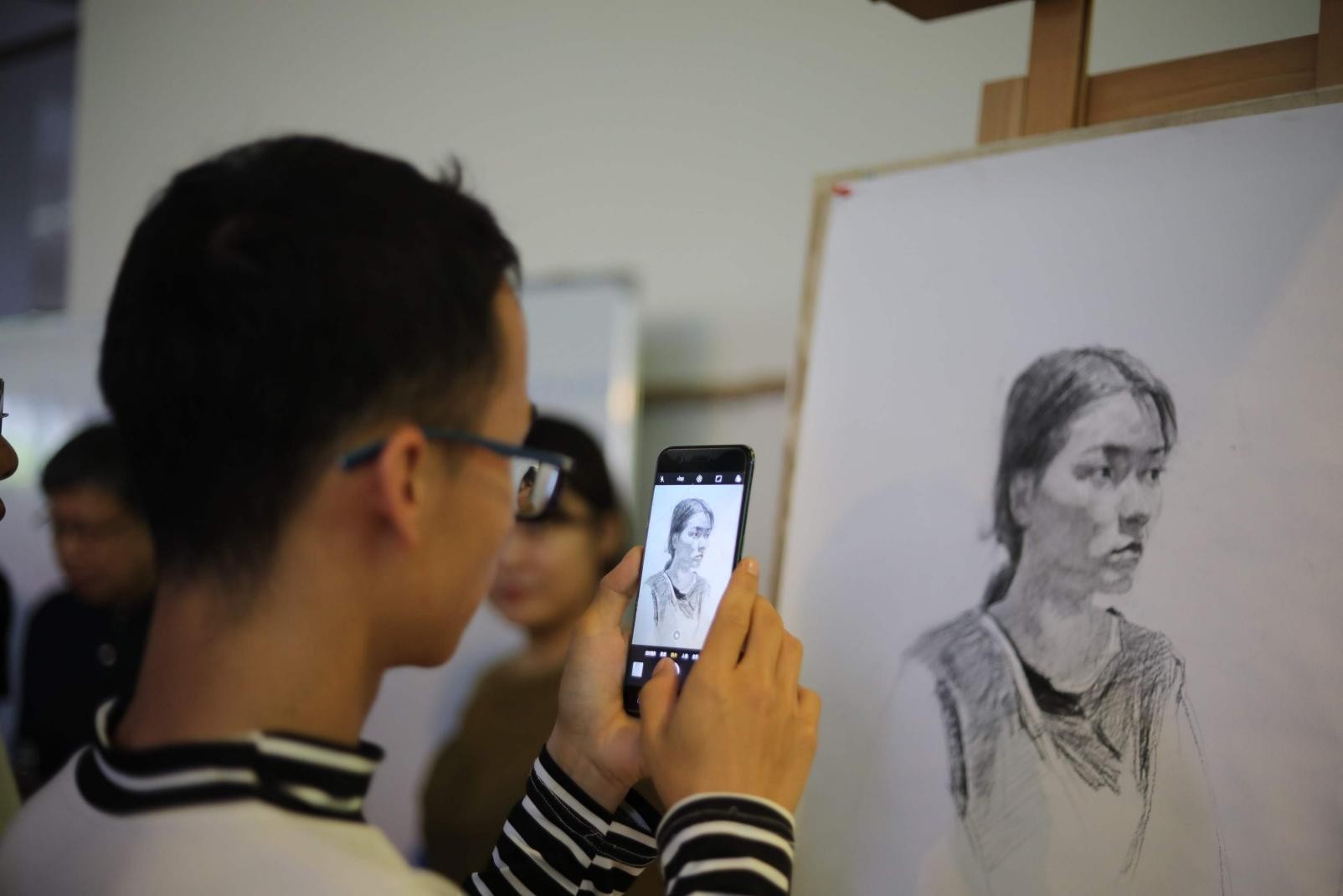 2019年6月4日上午八点,来自美国加利福利亚长滩州立大学的计宇教授莅临美术学院图书馆教学区进行现场作画示范。副校长胡胜老师、副院长唐海老师、副院长龚为老师、教研室主任张湘中老师、教务室主任肖玺老师、学工办副主任袁志伟老师、程宣睿老师以及美术学院全体绘画专业同学等参加了此次的教学活动。