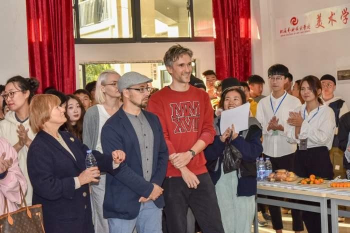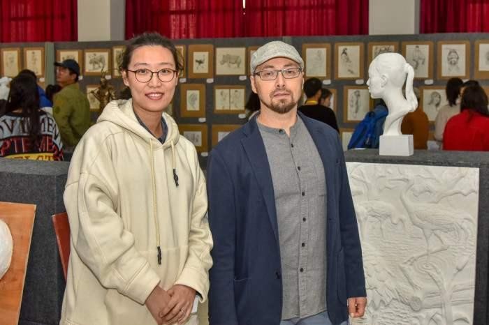 其次是副院长唐海致辞表示初次看到作品很是吃惊,并强调艺术之路艰辛、漫长,能走到最后的人是少数的, 对此我们不仅要努力,信念要坚定。然后送了“莫愁前路无知己,天下谁人不识君”这句诗来指引我们,最后让我们用作品去表达对世界的认识。