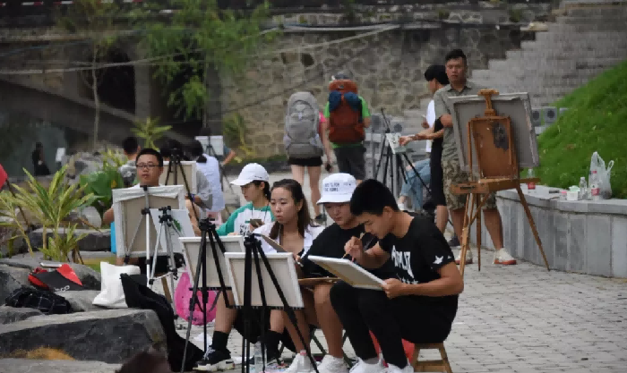 经历了几小时的舟车劳顿到达目的地后,为了便于管理,我校美术学院以十人为一个单位分成若干个小组进行写生安排。写生过程中带队老师会适时的对同学的作品进行指导,并且指导老师也会在一旁作画,通过绘画演示来告诉学生写生技巧等。每天写生结束后,带队的指导老师会对本组同学的作品进行一一点评,指出其优点及不足,从而提升了学生的绘画认知和写生技巧。
