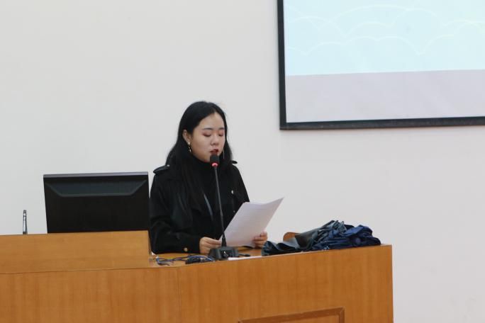 大会第二项:部负责人上台做工作汇报总结。动画学院分团委办公室主任杜明玥总结了分团委在本学期的工作,指出本学期工作的不足之处,并提出相应的措施。同时希望分团委的各位同学今后要加强学习提高素质团结协作搞好服务。