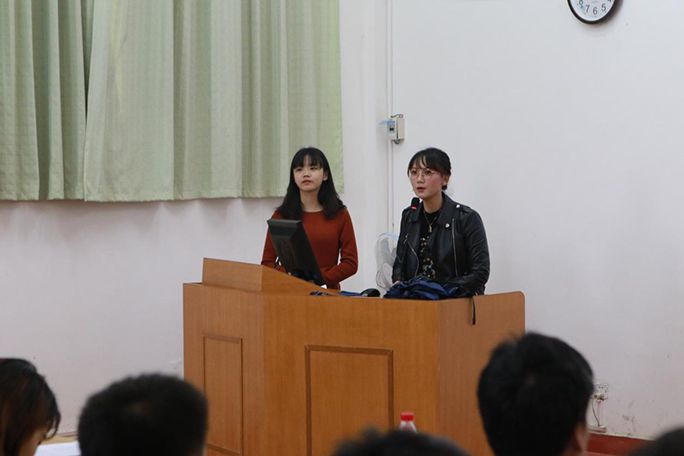 大会第一项:动画学院分团委负责人黄江洁老师讲话。首先黄江洁老师对我院分团委的所有同学及老师表示感谢,并对大家提出相应的要求,包括礼貌、以身作则、认真负责的态度等希望大家把分团委当作是工作、学习、成长、共享、服务的平台同时鼓励大家同舟共济,积极贡献自己的一份力量。