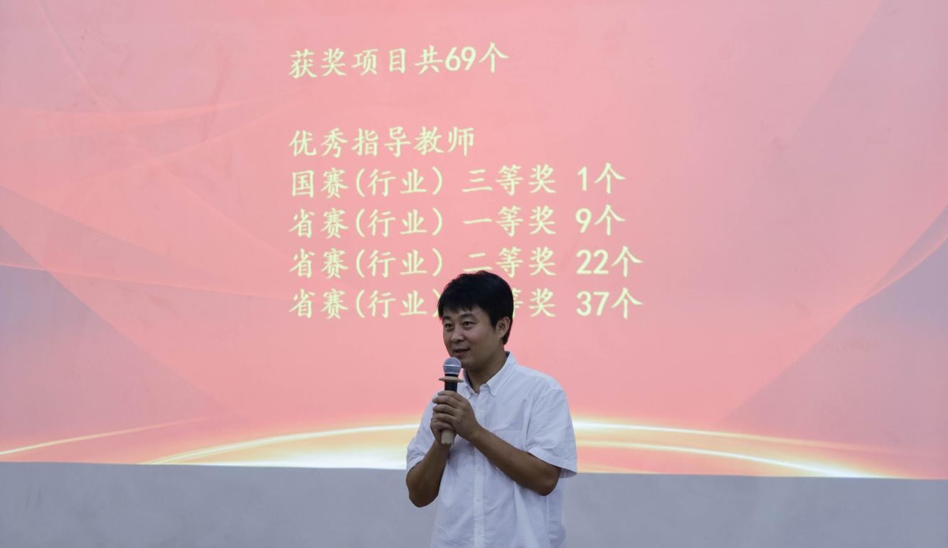 典礼第一项,全体参会人员向受表彰的优秀指导教师和优秀教育工作者表示热烈祝贺。过去一年里,在上级领导的支持指导和关心鼓励下、在全校师生的共同努力下,学校坚定壮志雄心,广大教职工上下同欲、勠力同心,我院荣获国赛(行业)三等奖 1个、省赛(行业)一等奖 9个、省赛(行业) 二等奖 22个、省赛(行业) 三等奖 37个。学校教育事业发展的每一步、取得的每一个新突破,都离不开广大教职工的默默耕耘和精心奉献。