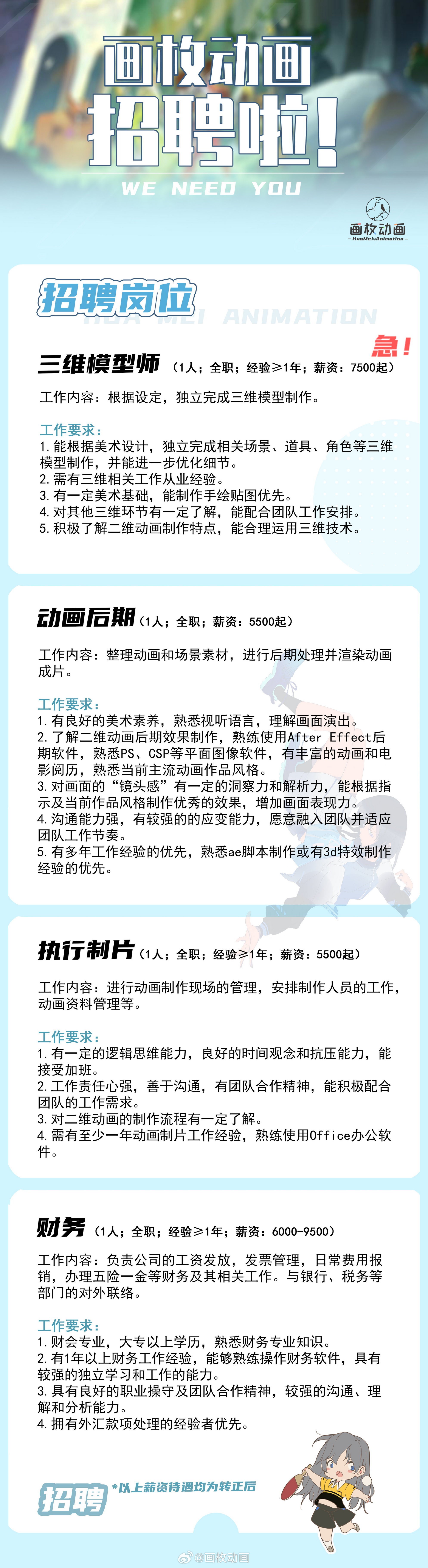 画枚动画招聘啦~(商务合作等请联系QQ:3561756733)最近两年都在长篇原创项目的制作中,期待你的加入,让我们一起来做动画吧!长年招聘~(只要微博没删就一直在招人。)