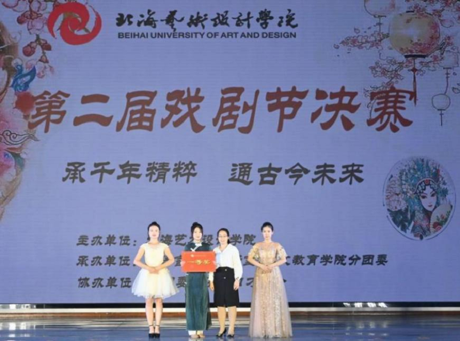 戏剧可见人生,人生融于戏剧。为深入学习党的二十大精神,进一步贯彻落实习近平总书记在中国作协十大开幕式上的重要讲话精神,丰富我校课余文化生活,弘扬优秀传统文化,加深本民族文化认同感。2022年11月18日19时30分,北海艺术设计学院“承千年精粹,通古今未来”第二届校园戏剧节决赛暨颁奖仪式在西校区大礼堂隆重举行。