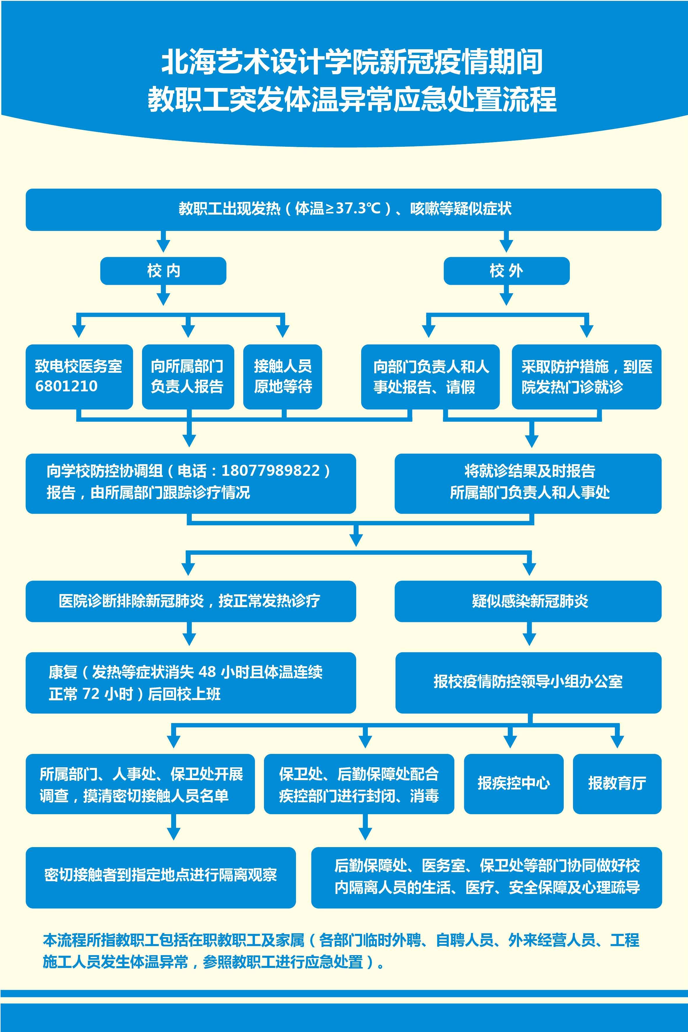 北海艺术设计学院新冠疫情期间教职工突发体温异常应急处置流程图