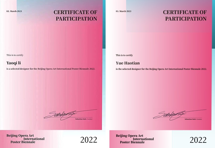 2022首届京剧艺术国际海报双年展评审工作已圆满收官展览开启作品征集以来,共收到来自中外34个国家和地区的1196位设计师的平面及动态海报作品组委会邀请了来自图形艺术、海报设计、京剧表演、艺术出版不同领域的知名艺术家和从业者担任终评评委,从多维角度评选入选作品。在次展览作品征集中,我视觉传达设计专业2019级学生岳浩田、李耀桤的设计作品入围,作品于3月7日,波兰华沙Retroavangarda美术馆展出!