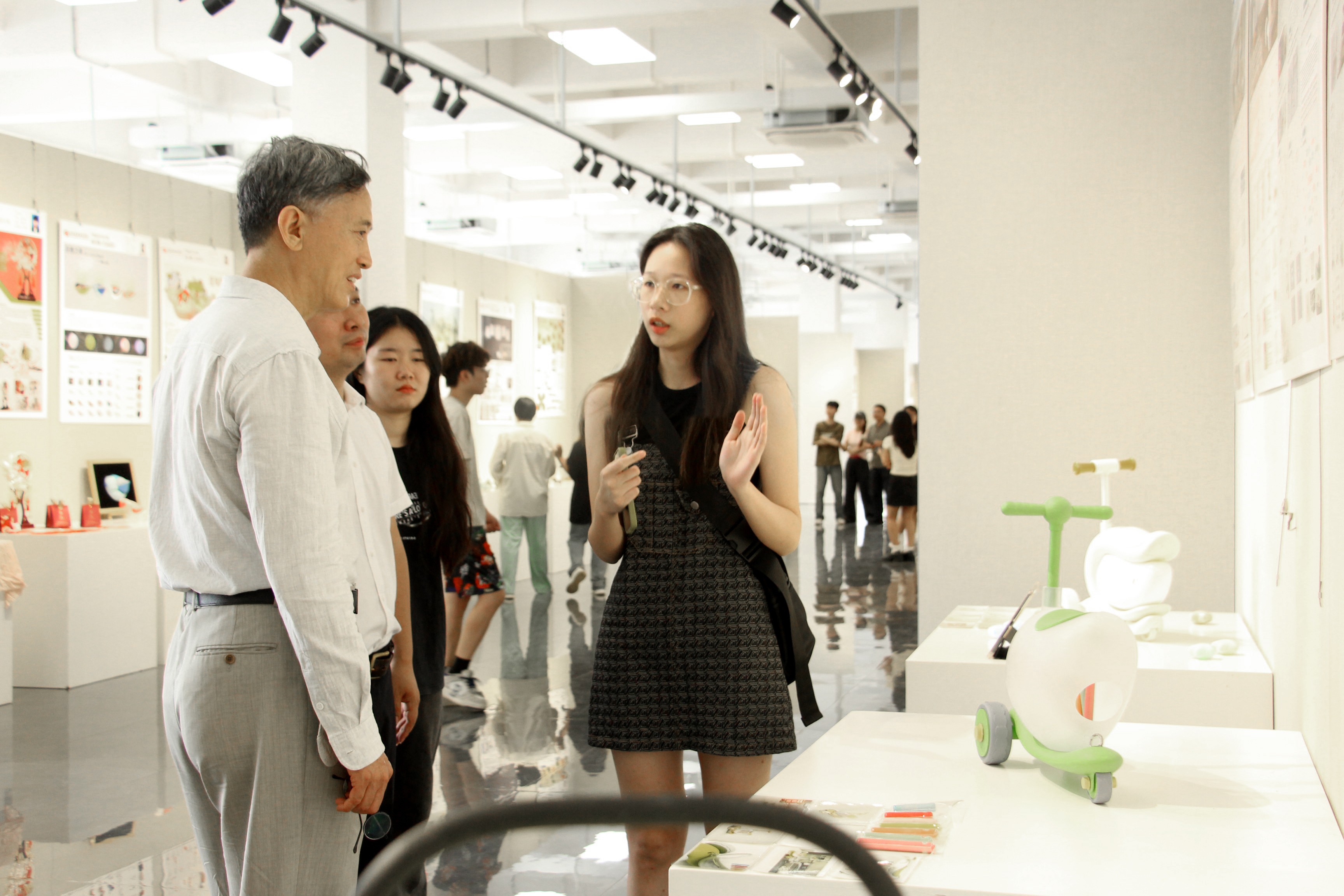同时,卢新华校长对产品设计专业学生们给予了宝贵的指导意见:一是在日新月异的高科技和知识爆炸的时代背景下,同学们要学会善于集合知识碎片,返哺于设计,通过设计语言推动产品创新发展。二是同学们在专业上要善于向名师名家学习,做到“由技入道”和“举一反三”,在科技与信息迅猛发展的时代,设计需要与时俱进,同学们不仅要具备扎实的专业基础和深厚的设计修养积淀,还要有广阔的设计视野,善于向优秀的设计师学习,善于洞察时代与生活,努力进取和开拓创新。三是同学们要具有远大的理想、使命与担当。设计是为人服务的,现代产品设计不仅仅是满足人们的基本生活需求,更是塑造人们生活方式和生活环境的重要力量。在数智时代,设计师们拥有无限的想象空间,但同时也面临着更多的机遇与挑战。因此,同学们需要不断提升自己的设计能力和创新思维,积极应对未来的挑战,用设计改善人们的生活质量,引导人们走向科学、文明与健康的生活方式。