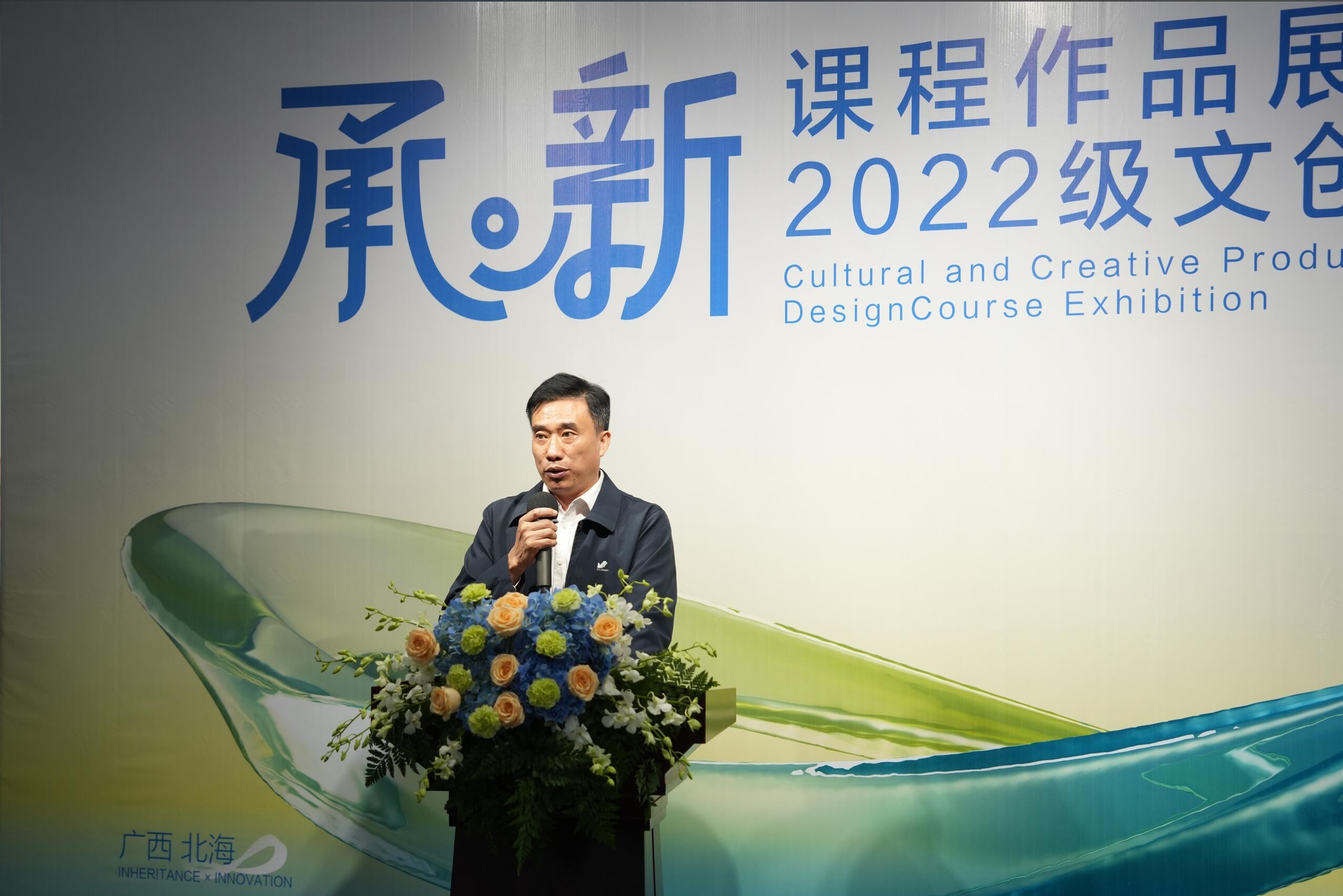 11月22日上午,设计艺术学院视觉传达设计专业 “承·新” 2022级文创产品设计课程作品展在学校南校区艺德楼8楼北侧展厅拉开帷幕出席开幕式的有:学校副校长陶立阳、桂林电子科技大学北海校区设计与创意学院院长葛俊杰、合浦汉代文化博物馆馆长廉世明、北海远见传媒集团副总经理王斌、北海远见传媒集团副总经理廖艺艺、北海银方健康产业有限公司副总经理崔玉丰、创新创业学院副院长陈渤水、设计艺术学院党总支书记黄锦、院长李林平、党总支副书记林秀琪、副院长白建强、李佩、邓渠成、吴慧霞,以及马振庆、郭强、彭馨弘、傅颖哲等教授及任课教师和2022级学生。开幕式由视觉传达设计专业教师王昳凡主持。