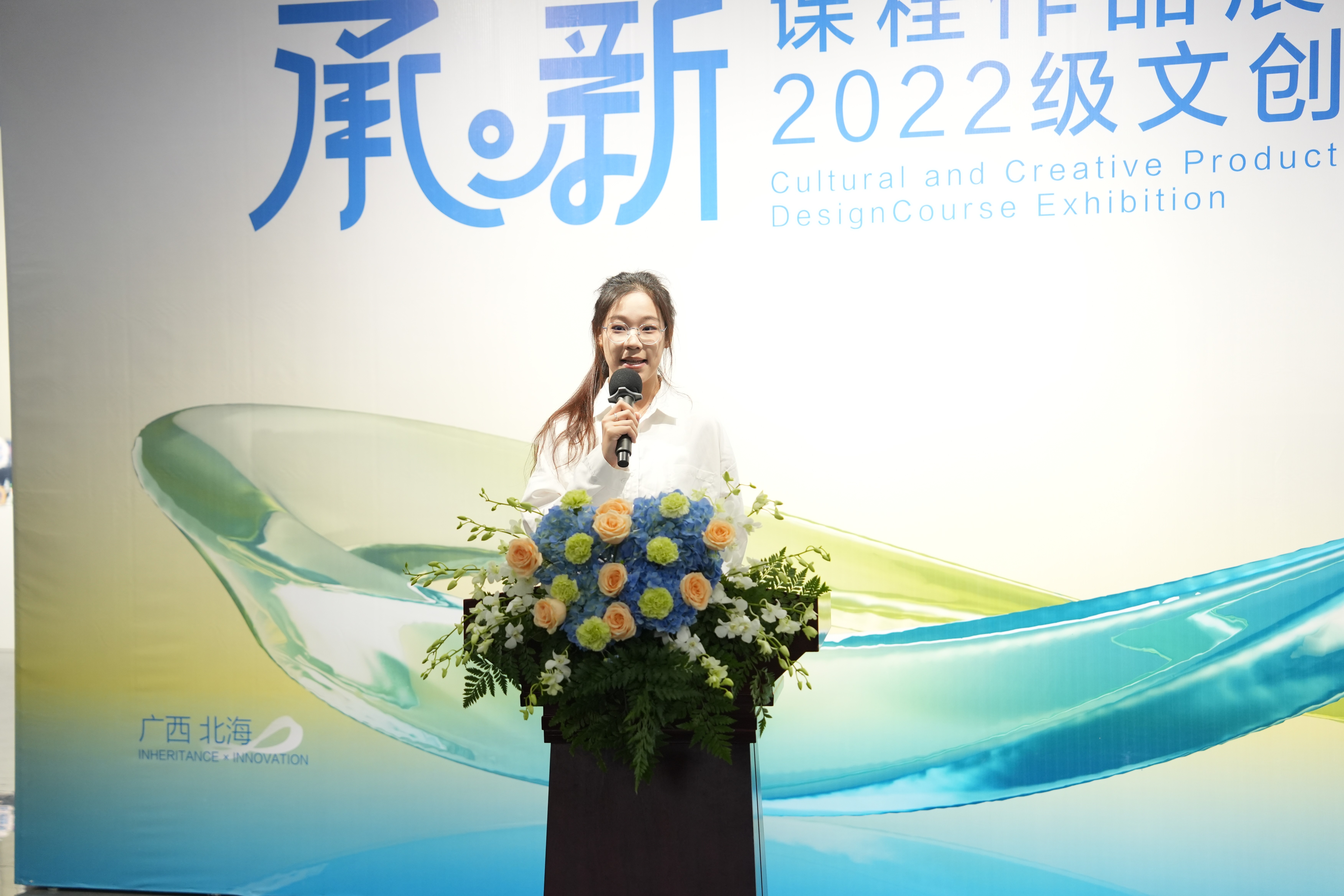 接下来,学生代表视觉2215班邵婉婷同学以饱满的热情分享了自己在文创产品设计课程中的学习心得和创作体会,展现了我院学生对传统文化的深刻理解和现代设计的巧妙融合。