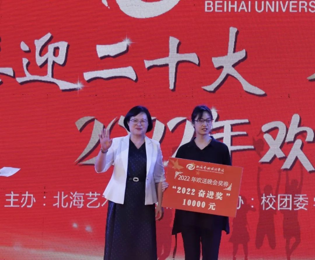 篇章二:韵歌芳华,砥砺前行 新青年要勇做革命的先驱,新青年要锐意创新勇开先河,新青年更要用辛勤的汗水铸造辉煌!让我们砥砺前行不负青春! 第二轮抽奖环节抽取二等奖1000元共十名,担任本次抽奖的领导嘉宾有郑念贻董事长、彭仁副校长和陶立阳副校长,恭喜获得二等奖的幸运儿们! 篇章三:艺梦逐路,灯火星传 舞蹈《青春不落幕》 每个人的青春都只是一段岁月,但一代又一代的青春连接起来,那就是灿烂的星河,总之我们的青春永远都不会落幕,将持续盛开。让我们接过时代的火把,使这把火也随着一代又一代艺术人才的涌现愈燃愈烈。 第三轮抽奖环节抽取一等奖5000元共两名,担任本次抽奖的领导嘉宾是校长卢新华,恭喜获得一等奖的幸运儿们! 篇章四:青春起航,季亿留夏 青春是站在山巅与日月星辰对话,是潜游海底和江河湖海畅谈,在这个盛夏,让我们扬起青春的风帆,与热爱并肩奔跑,将回忆保留珍藏。 第四轮抽奖环节抽取奋进奖10000元共一名,担任本次抽奖的领导嘉宾是学校党委书记张阳,恭喜获得奋进奖的幸运儿! 记忆的长河,历历在目,挥洒的青春紧跟新时代的脚步,伴着一个又一个精彩的节目,欢送晚会也拉下帷幕。相聚的时光总是快乐而短暂,让我们恋恋不舍。无论天南海北,不论相聚离别,让我们铭记此时此刻的快乐并真心祝愿大三的学姐学长们,前程似锦,扬帆起航!(何佳惠、王星雨/摄)