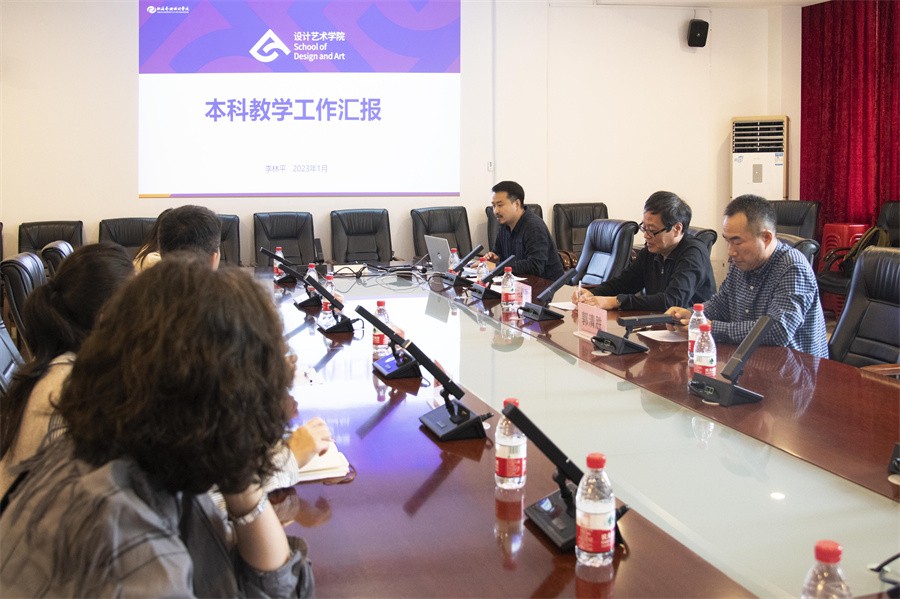 会上,李林平院长分别从组织架构、教学模式、学科建设、培养目标、办学定位等方面向专家们做了设计艺术学院本科教学工作汇报。